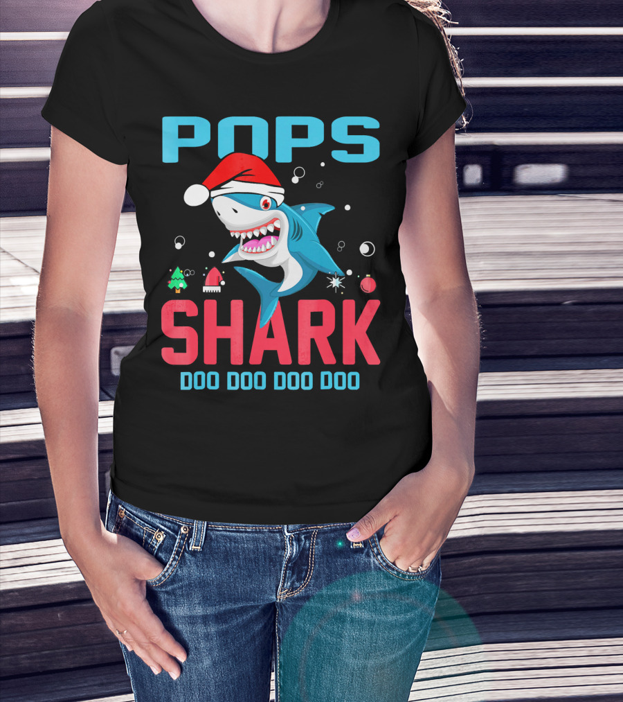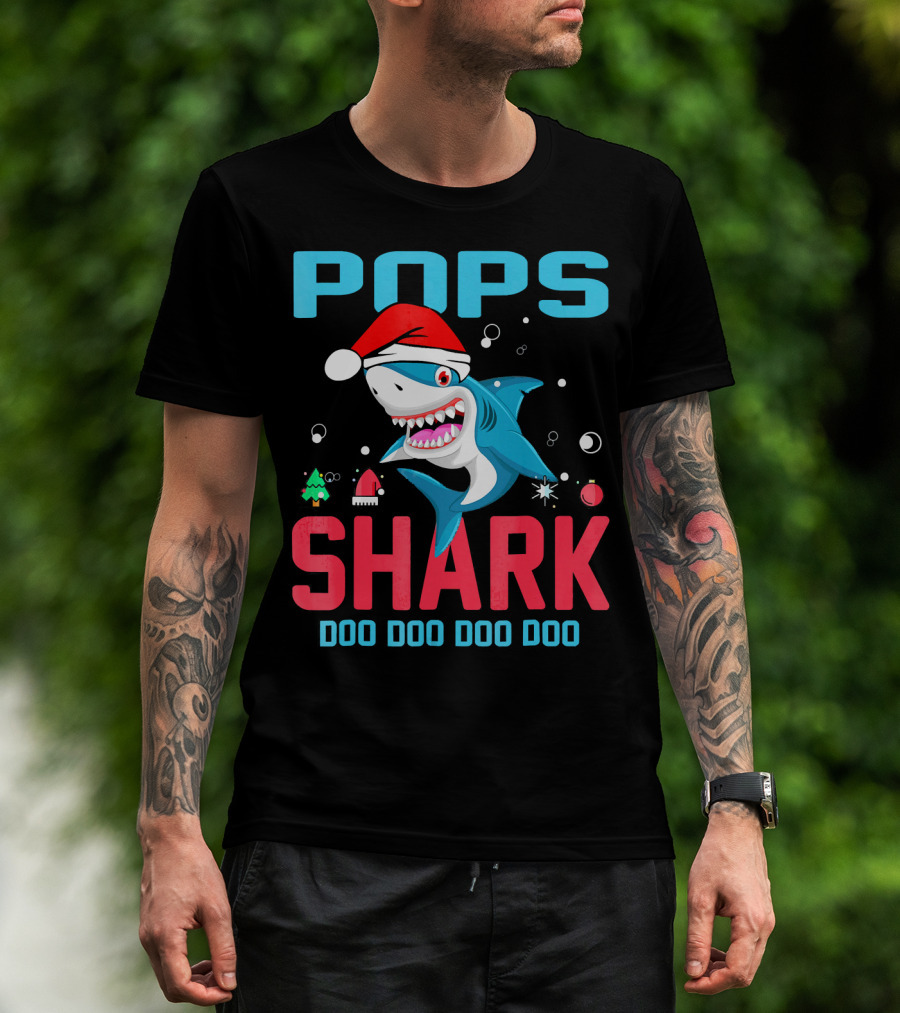 Pops Shark Doo Doo Doo Doo Santa Hat Christmas T-Shirt