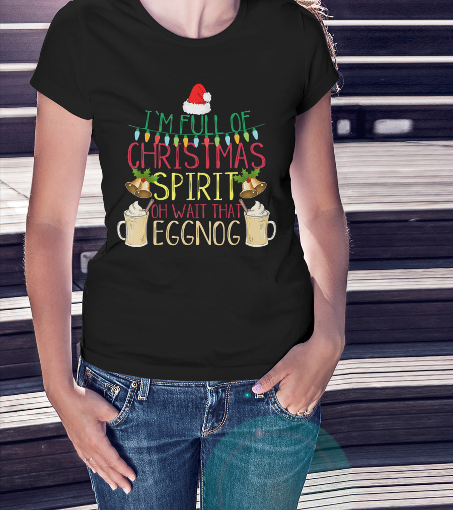 I'm Full Of Christmas Spirit Oh Wait That Eggnog Hat Lights Bells T-Shirt