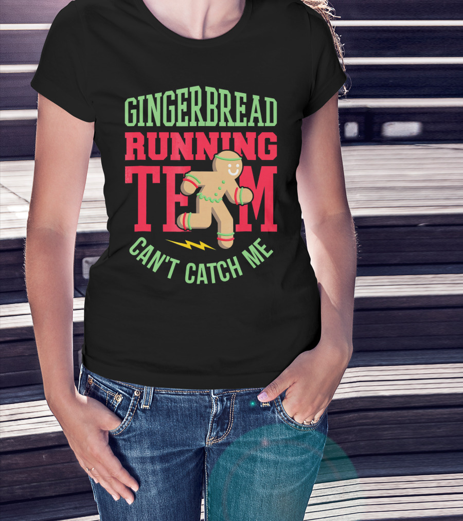 Gingerbread Running Team Can't Catch Me Christmas T-Shirt