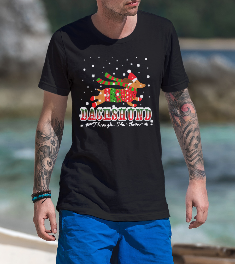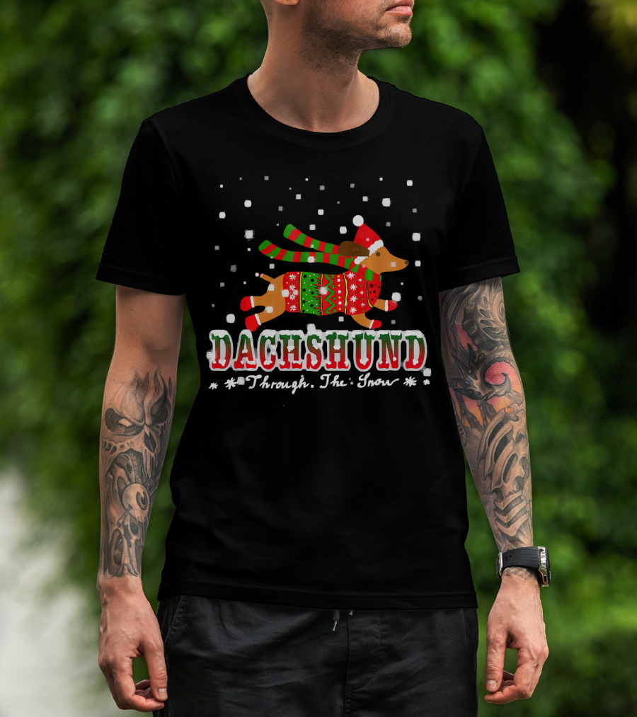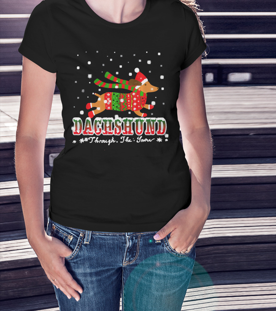 Dachshund Christmas Sweater Through The Snow Winter Holiday T-Shirt