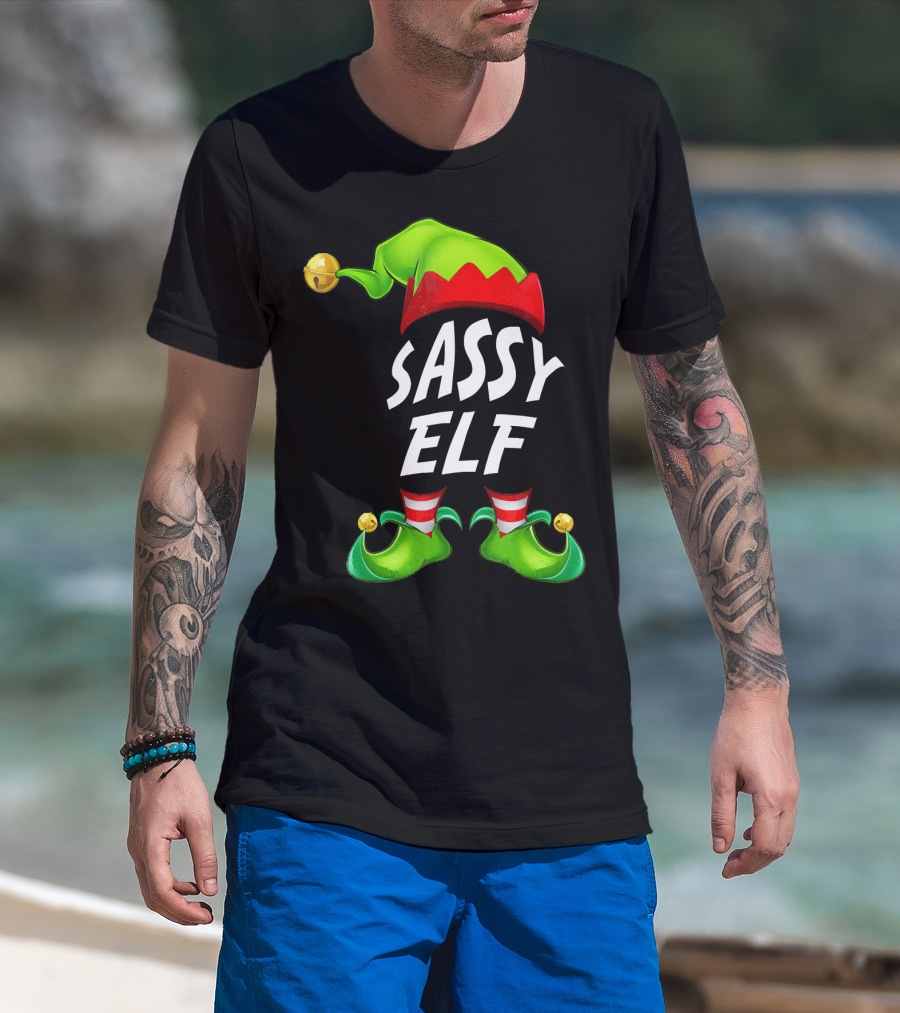 The Sassy Elf Christmas Funny Fam T-shirt is designed for everyday wear and a consistent fit. Fabric is pre-shrunk ring-spun cotton with durable stitching. See the size chart below for exact measurements.