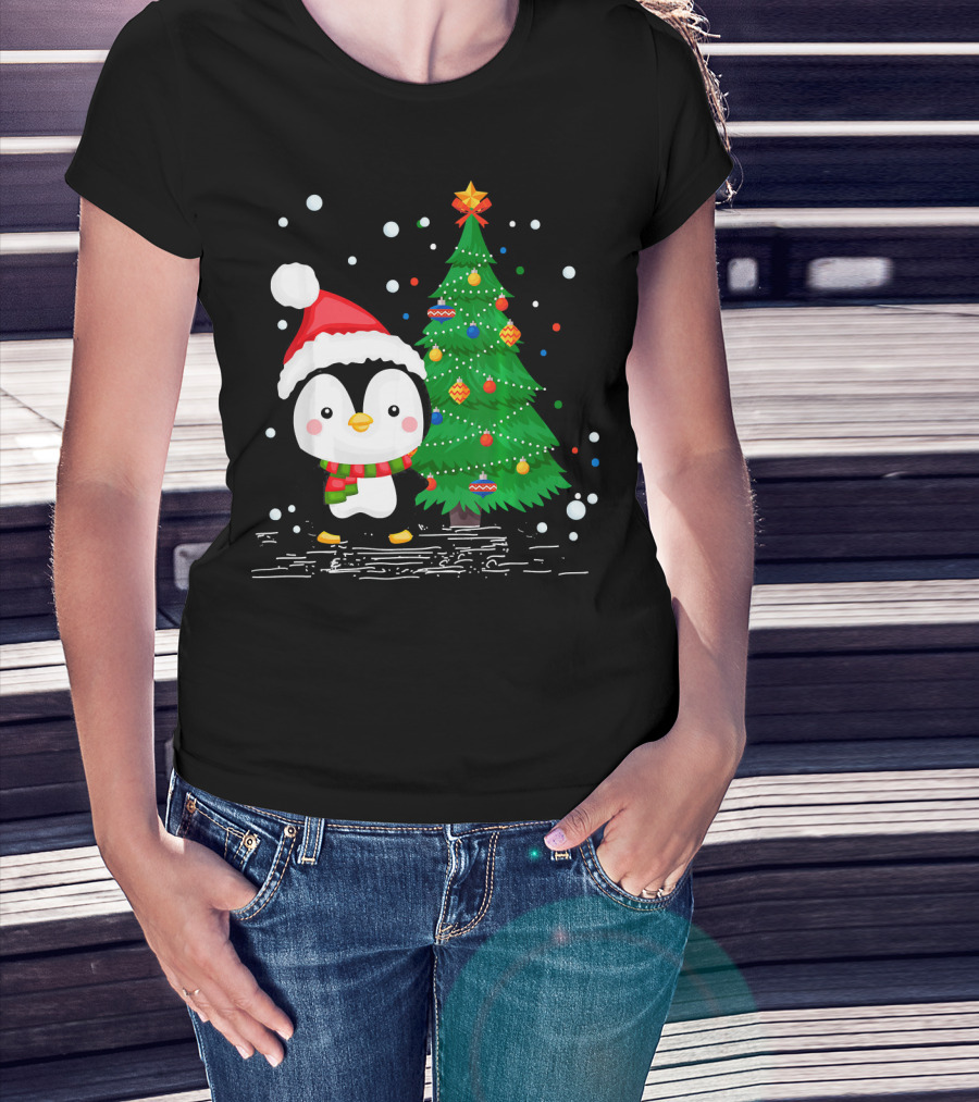 Funny Penguin Lover Santa Hat Christmas Tree Pengu T-Shirt