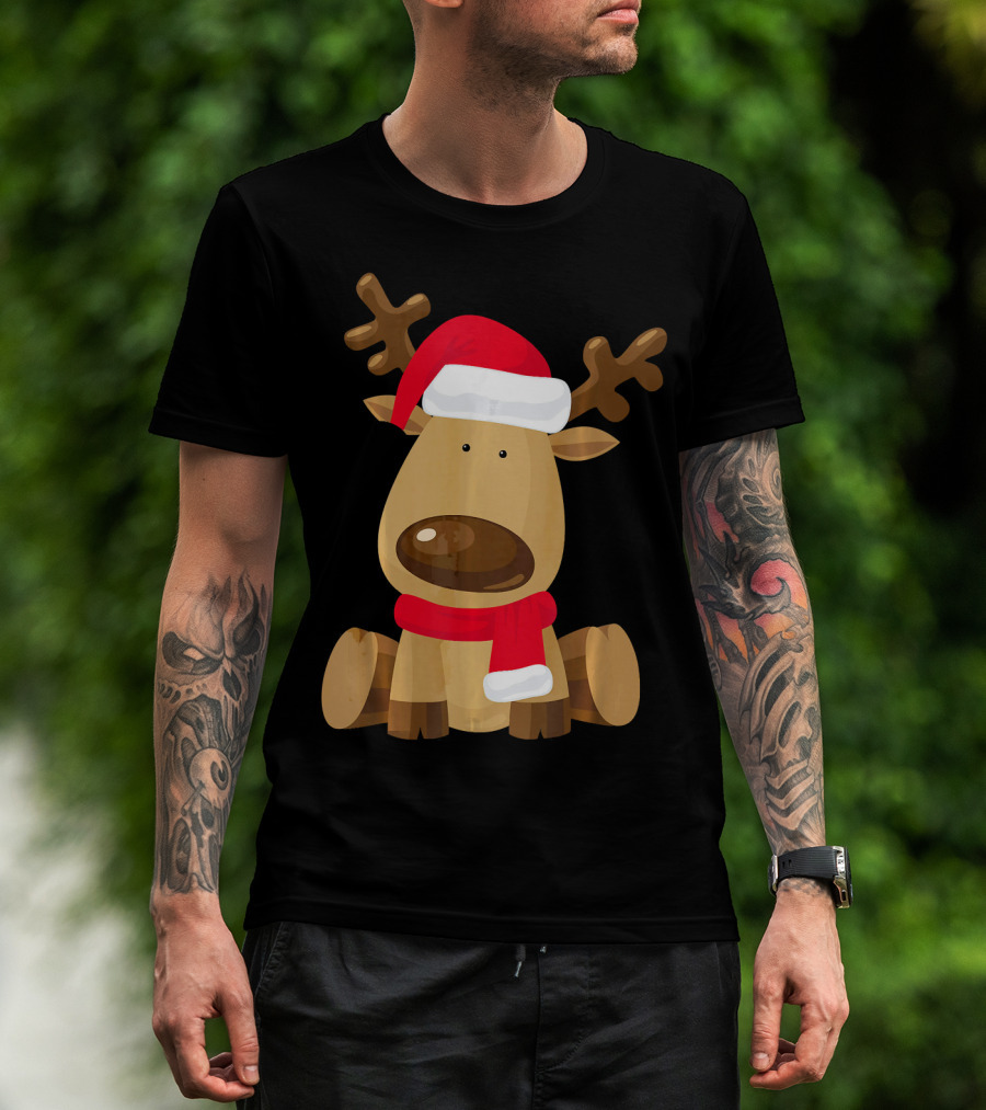 Adorable Festive Reindeer With Santa Hat And Scarf T-Shirt
