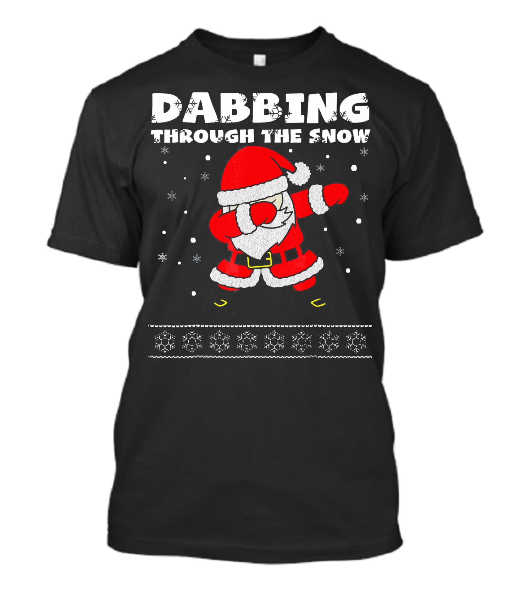 The Dabbing Santa Through The Snow Christmas Holiday Fun T-shirt is designed for everyday wear and a consistent fit. Fabric is pre-shrunk ring-spun cotton with durable stitching. See the size chart below for exact measurements.