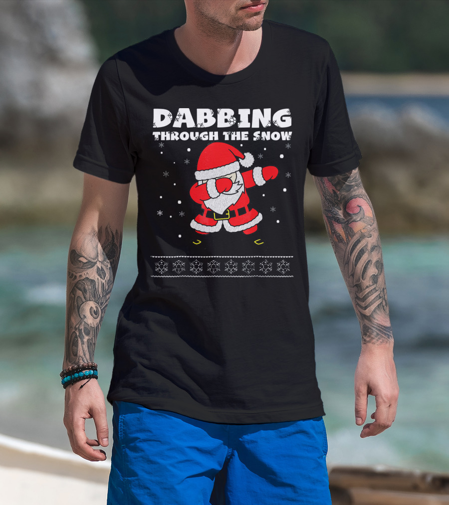 Dabbing Santa Through The Snow Christmas Holiday Fun T-Shirt