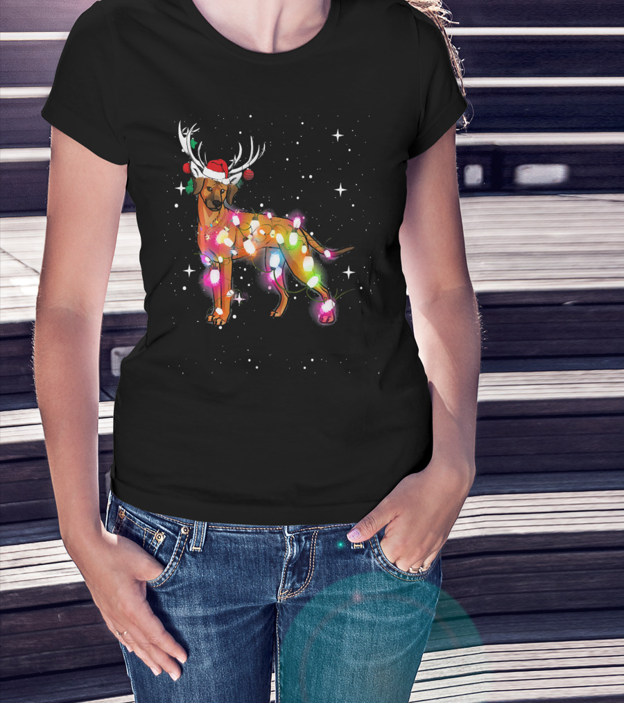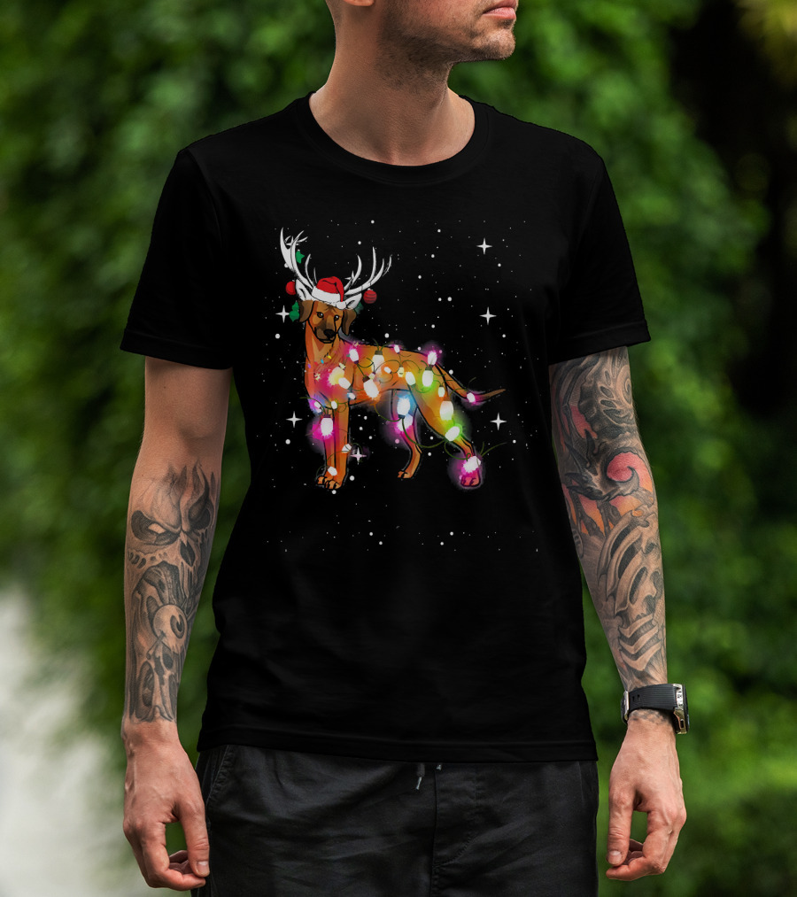 Christmas Lights Rhodesian Ridgeback Dog With Antlers Santa Hat T-Shirt