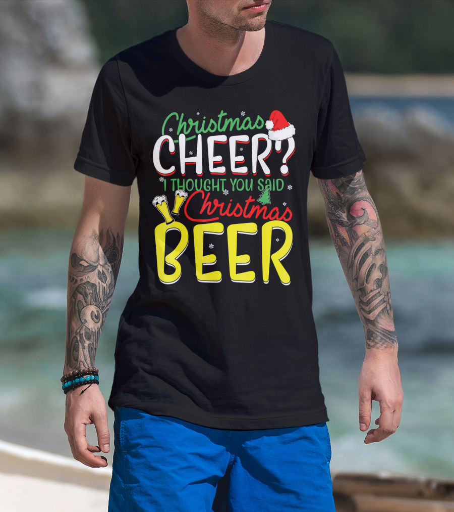 Christmas Cheer I Thought You Said Christmas Beer With Santa Hat And Beer Glasses T-Shirt