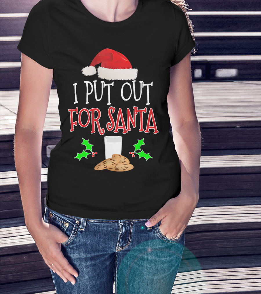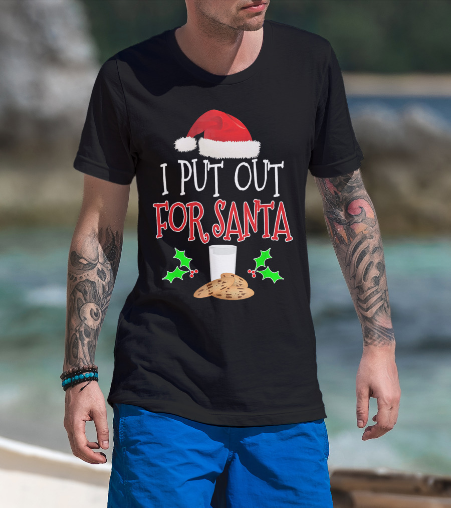 I Put Out For Santa Milk Cookies Holly Santa Hat T-Shirt