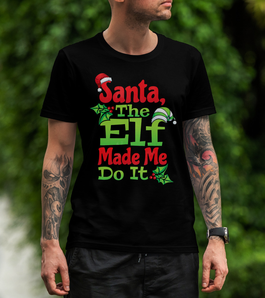 Santa The Elf Made Me Do It Christmas Family Matching T-Shirt