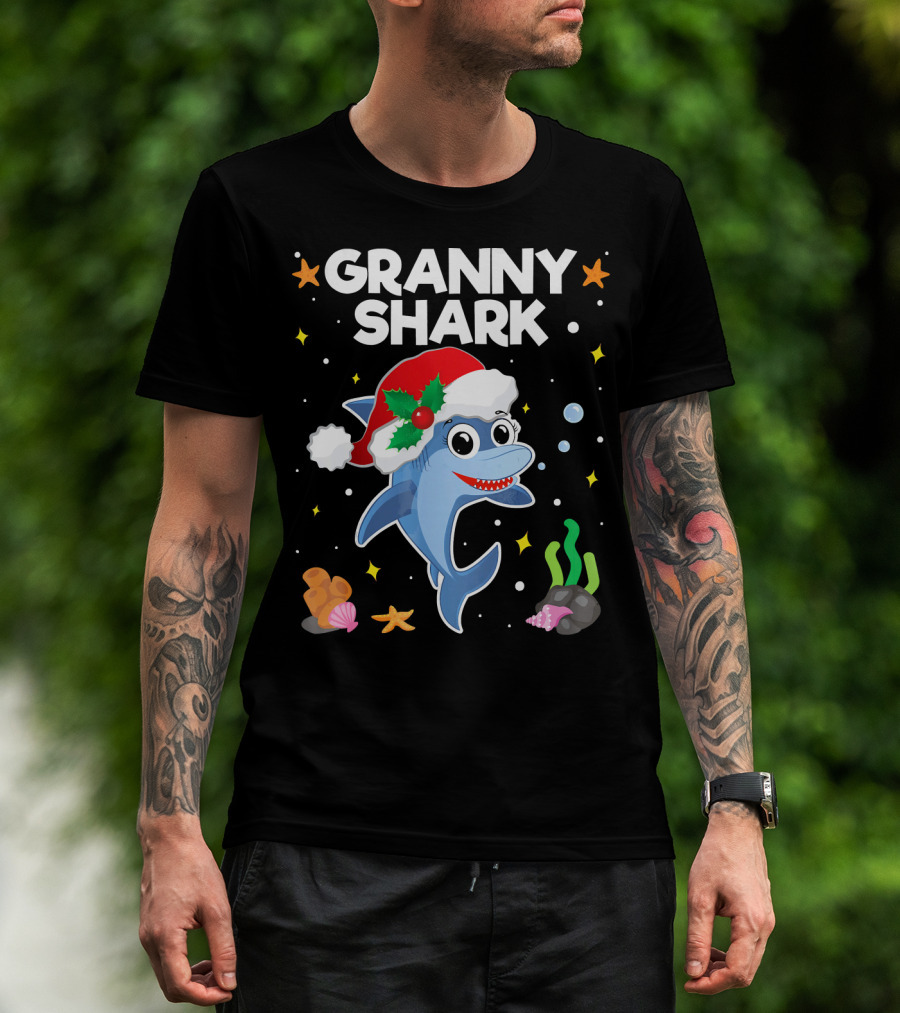 Granny Shark Santa Hat Christmas T-Shirt