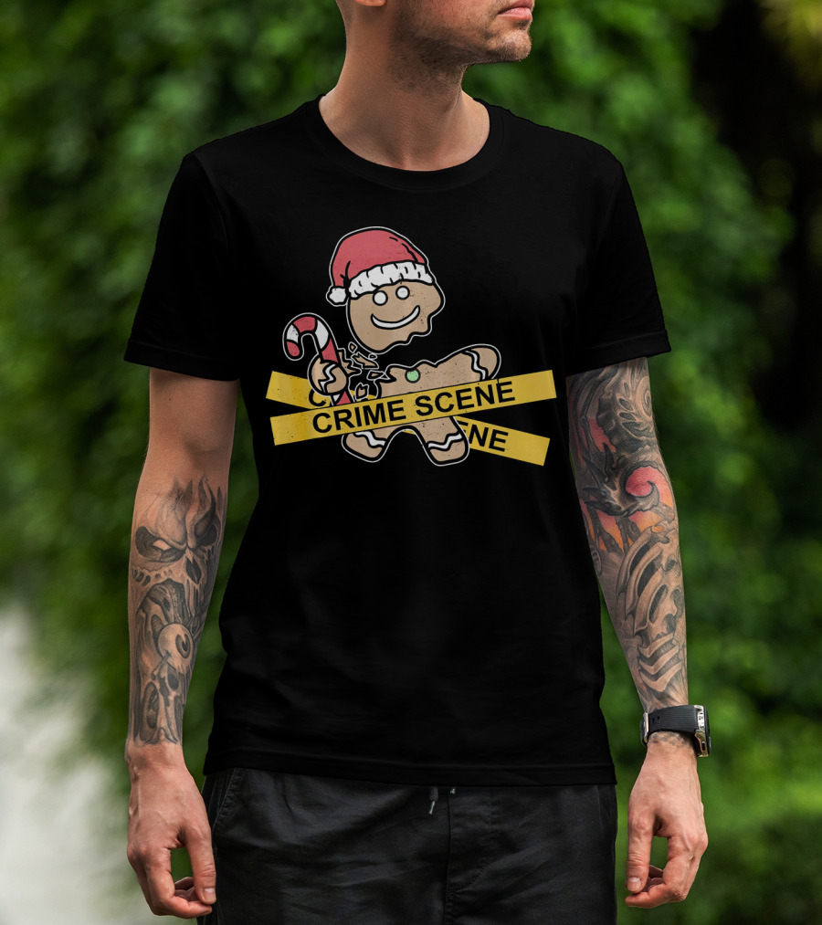 Gingerbread Cookie Crime Scene Santa Hat Candy Cane Christmas T-Shirt