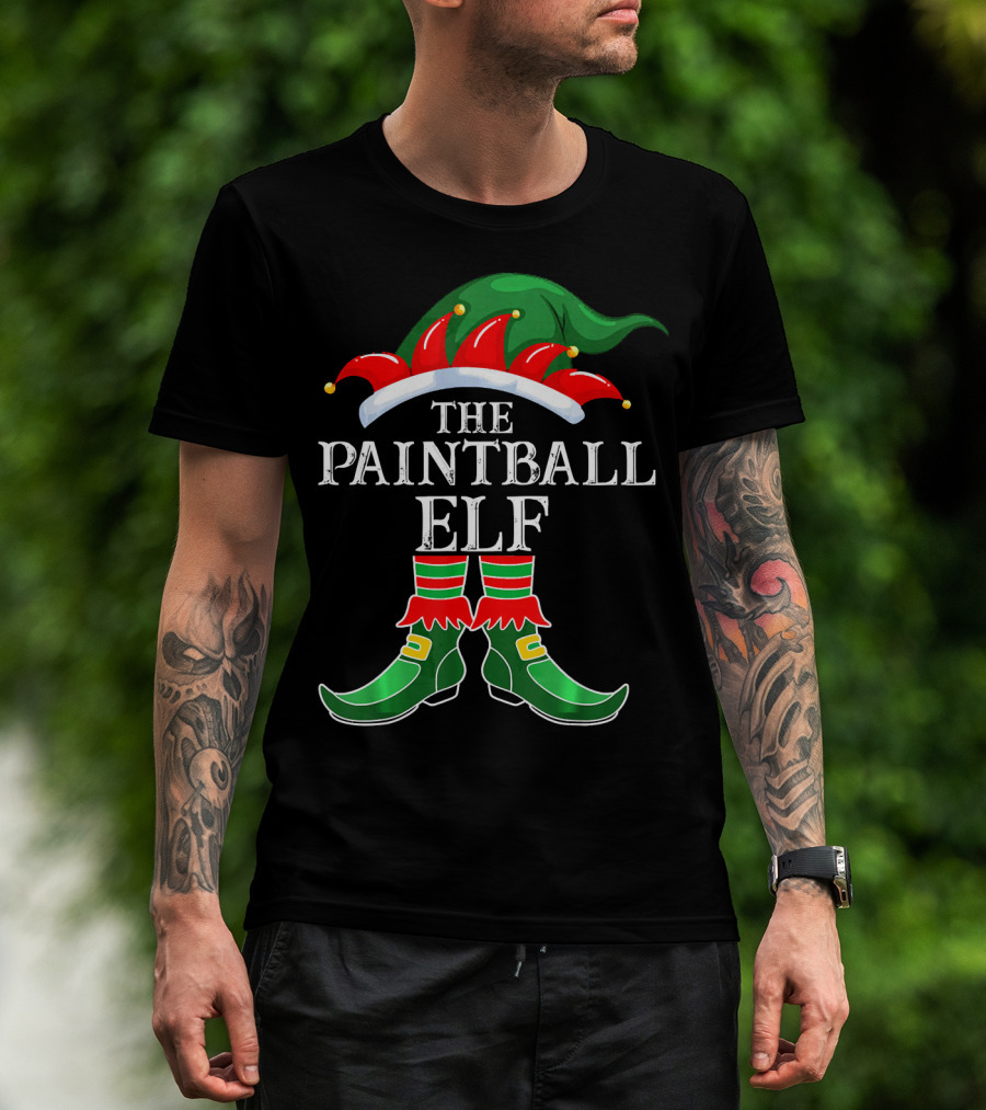 The Paintball Elf Christmas Hat Boots T-Shirt