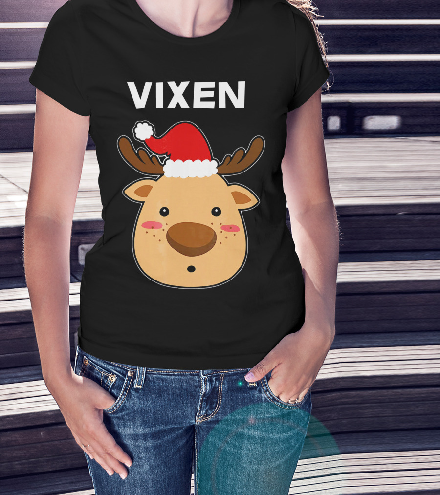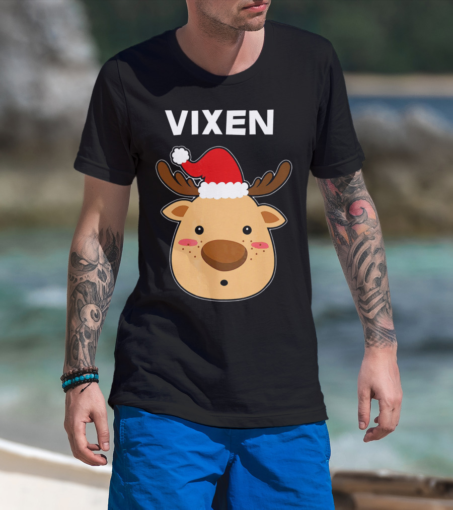 The Vixen Santa Hat Reindeer T-shirt is designed for everyday wear and a consistent fit. Fabric is pre-shrunk ring-spun cotton with durable stitching. See the size chart below for exact measurements.