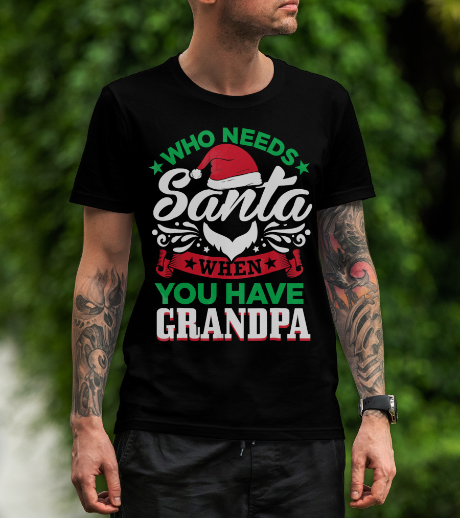 Who Needs Santa Hat Beard Grandpa T-Shirt