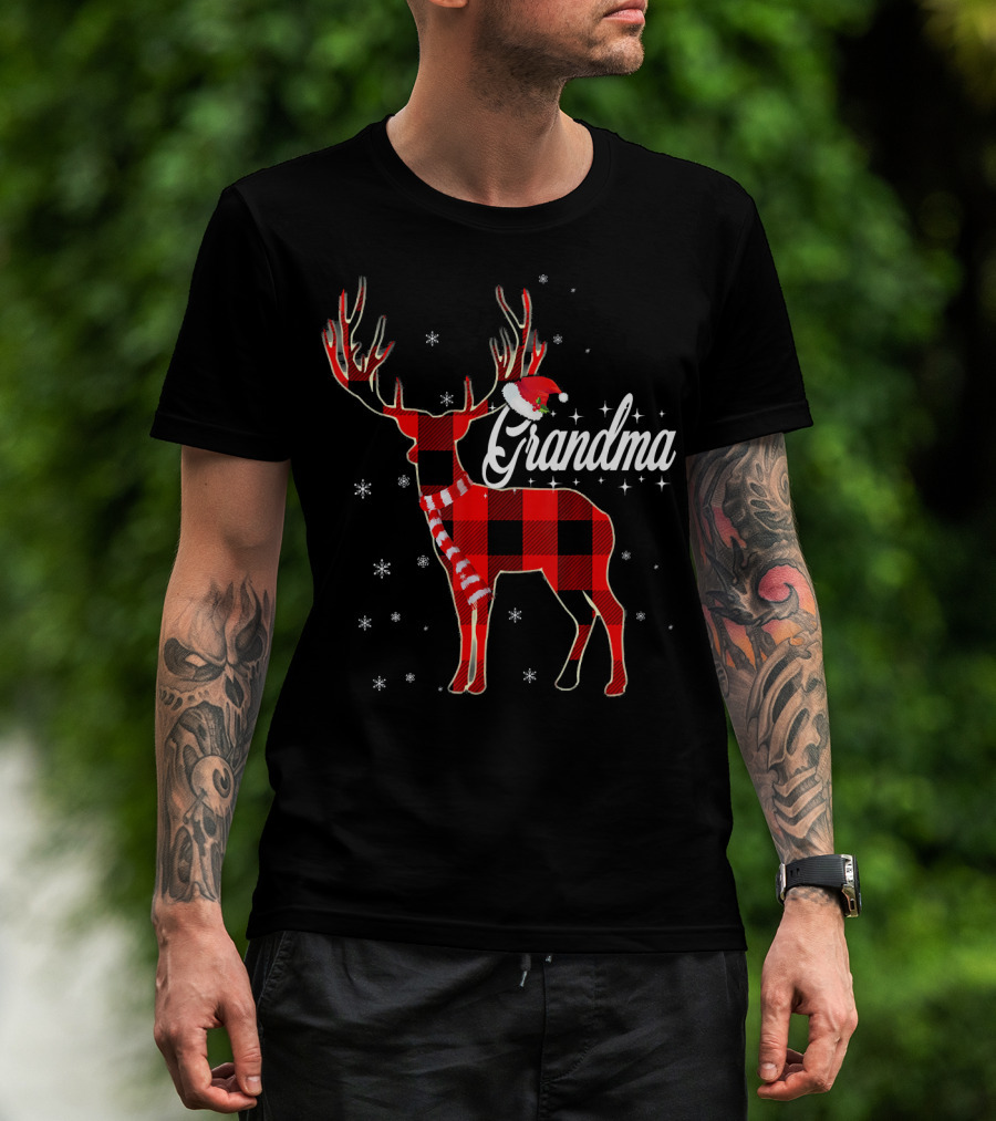Grandma Reindeer Plaid With Santa Hat And Snowflakes T-Shirt