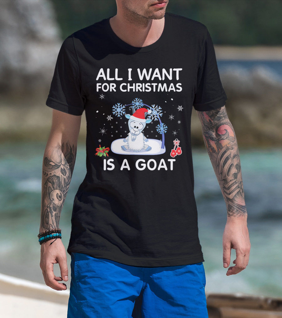 ALL I WANT FOR CHRISTMAS IS A GOAT Snowflakes Santa Hat Holiday T-Shirt