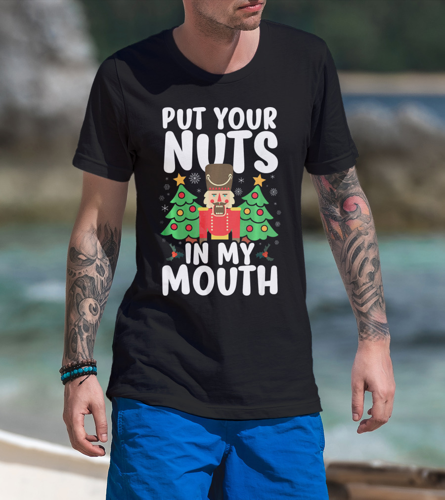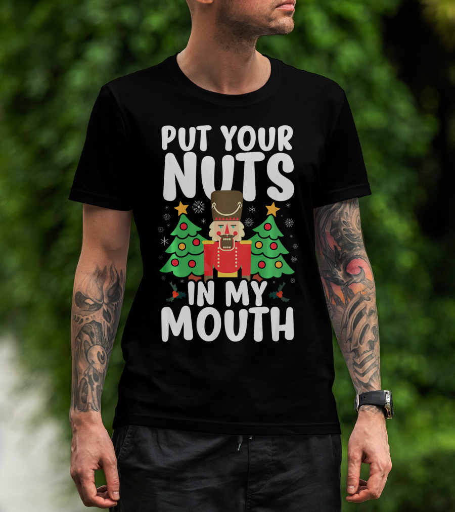 Put Your Nuts In My Mouth Funny Christmas Gag Nutcracker Xmas Trees T-Shirt