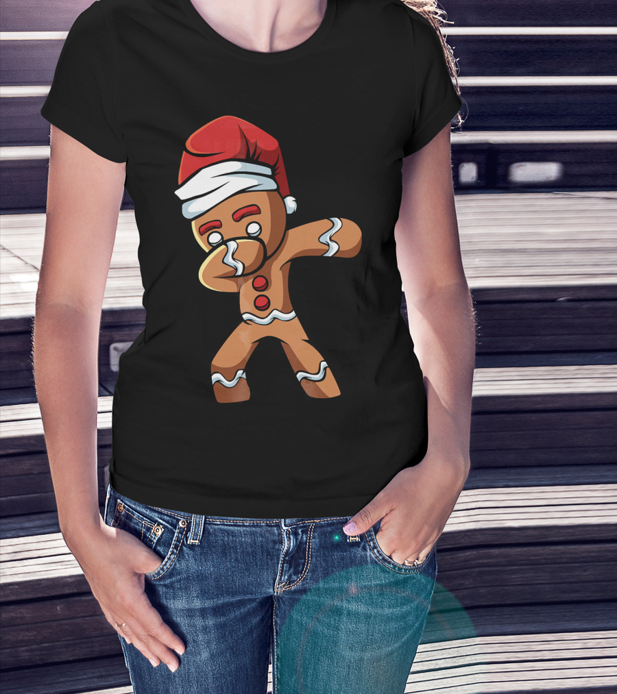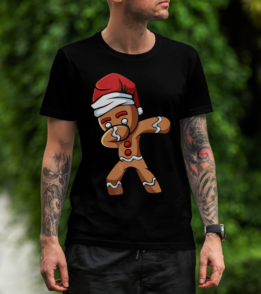 Dabbing Gingerbread Man Santa Hat Holiday Dance T-Shirt