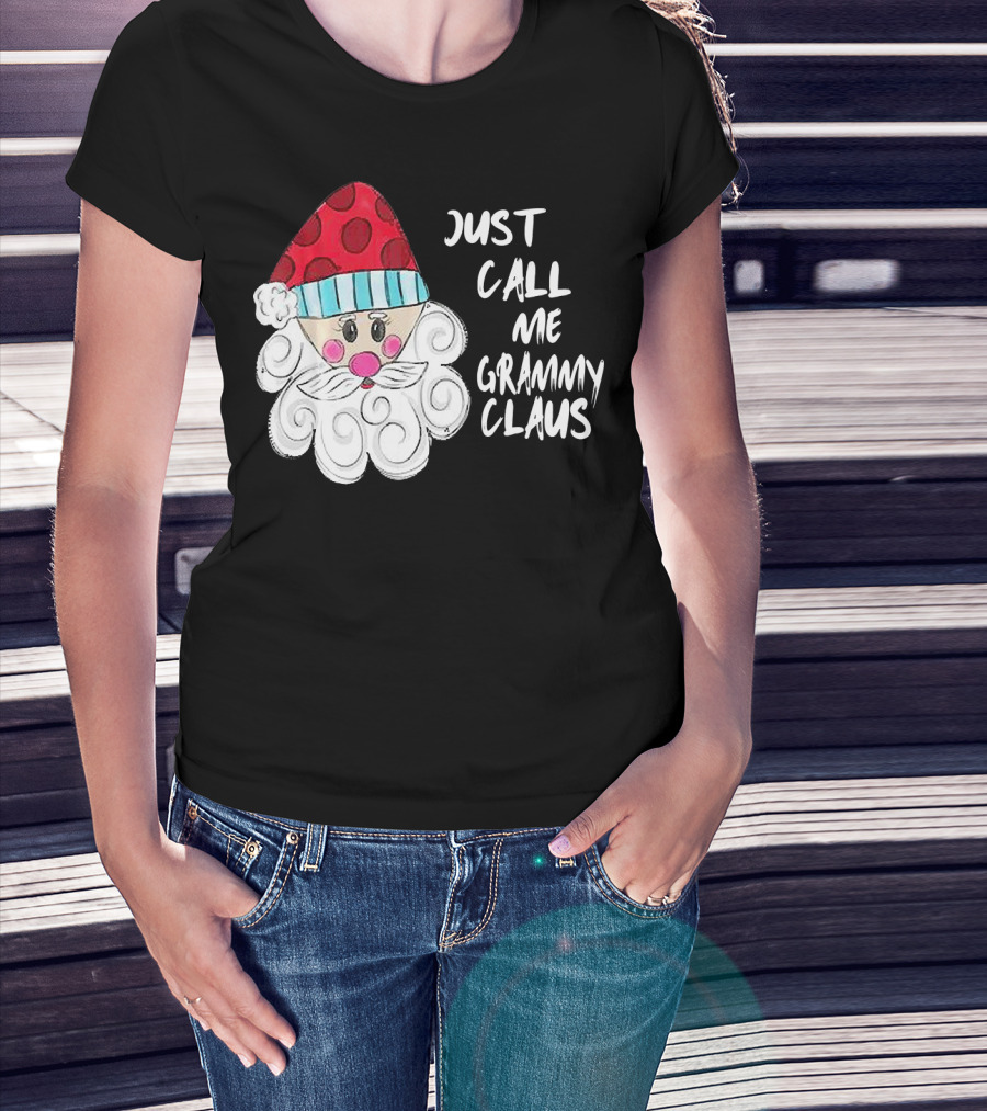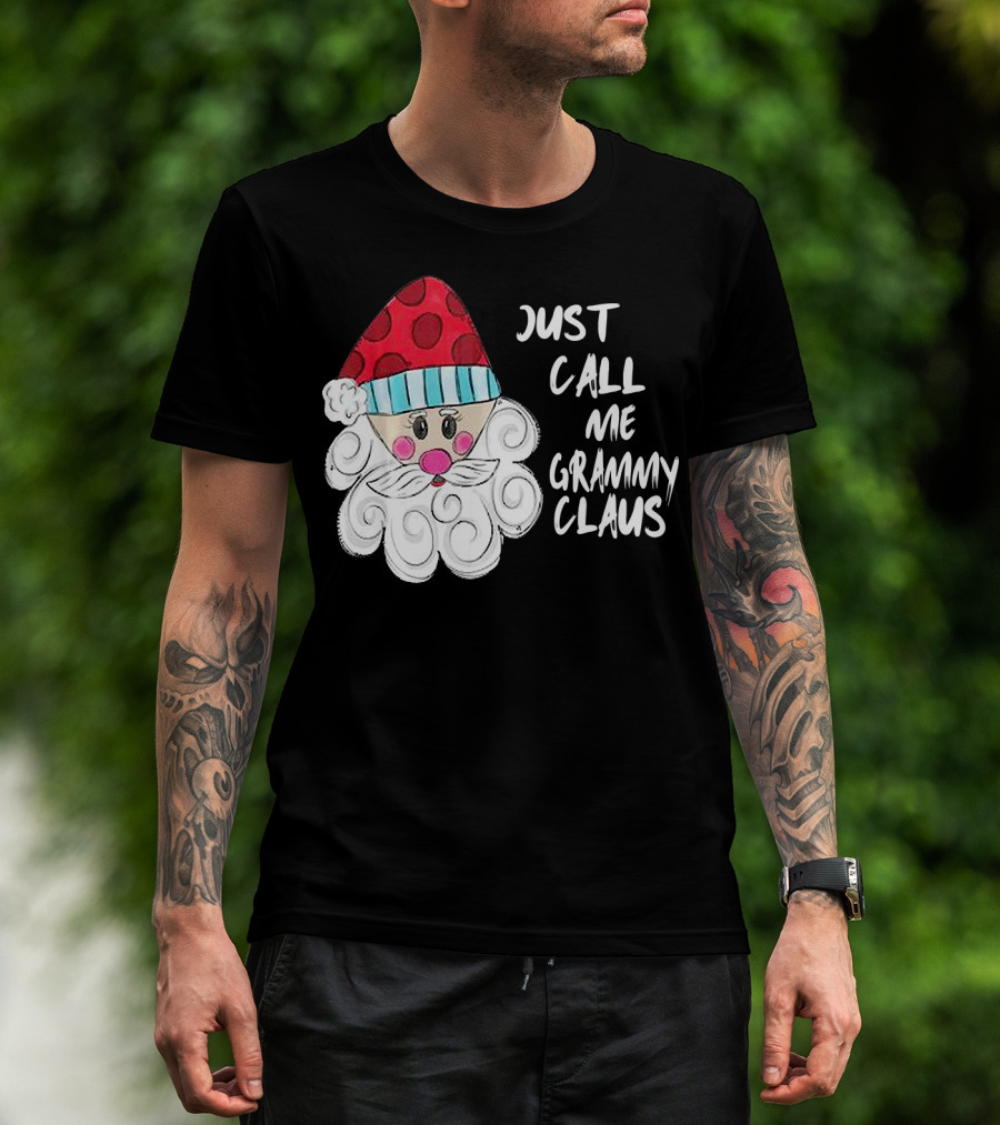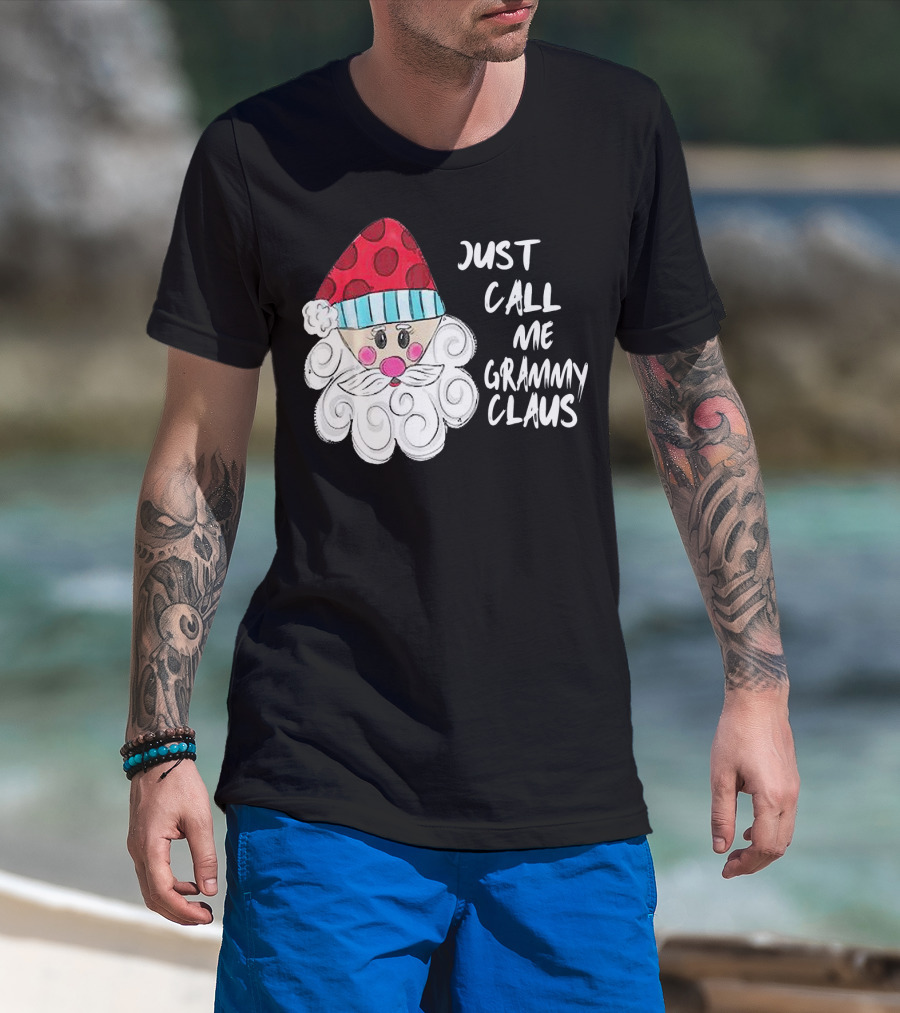 Just Call Me Grammy Claus With Cute Santa Beard And Hat T-Shirt