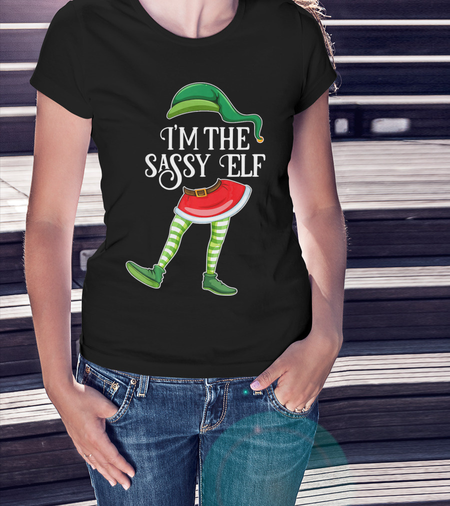 I'm The Sassy Elf With Green Hat And Striped Socks T-Shirt