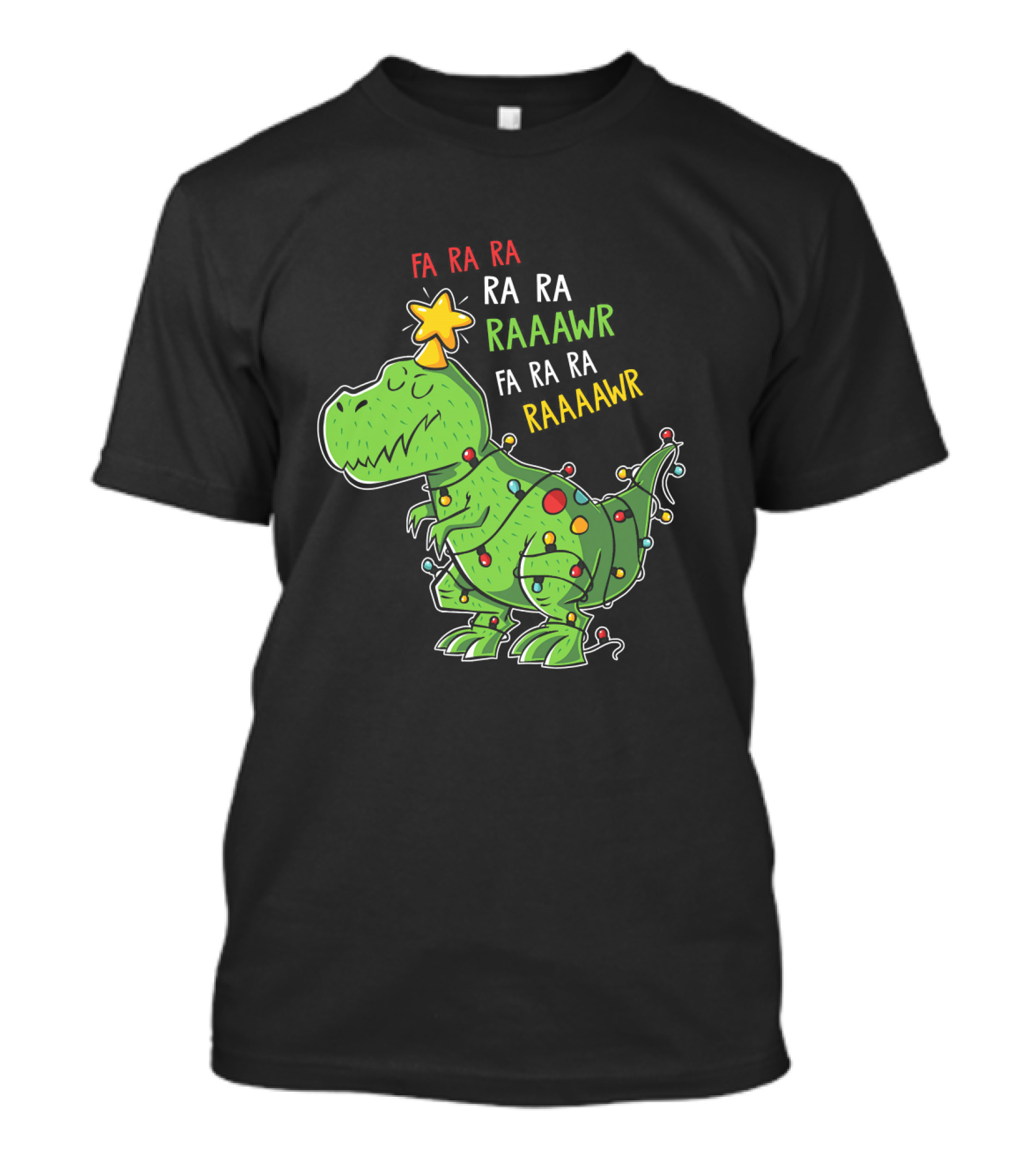 The Fa Ra Ra Ra Raawwr Fa Ra Ra Ra Christmas Rex T-shirt is designed for everyday wear and a consistent fit. Fabric is pre-shrunk ring-spun cotton with durable stitching. See the size chart below for exact measurements.