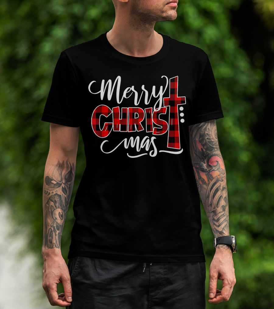 Merry Christmas Buffalo Plaid Crossmas T-Shirt