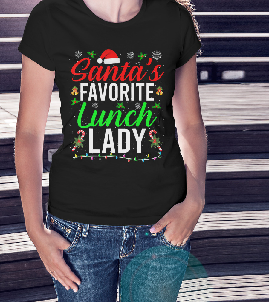 Santa's Favorite Lunch Lady Christmas Candy Cane Snowflakes T-Shirt