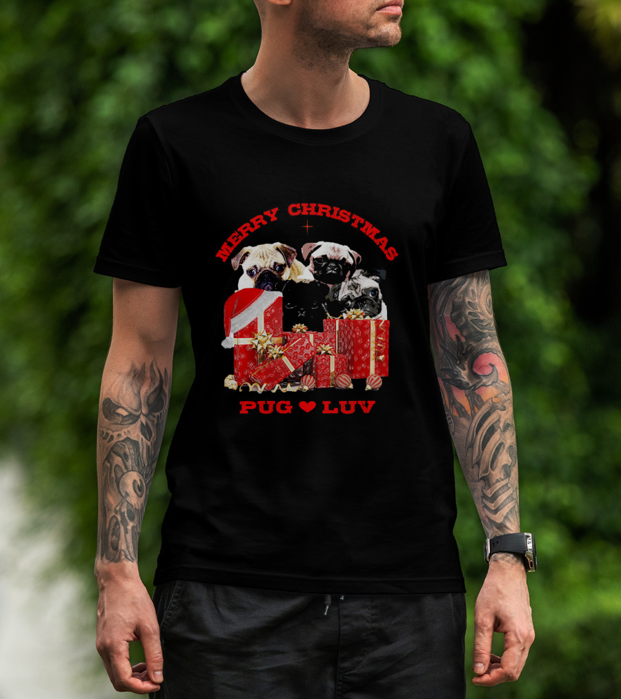 Merry Christmas Pug Luv With Pug Dogs And Gifts T-Shirt