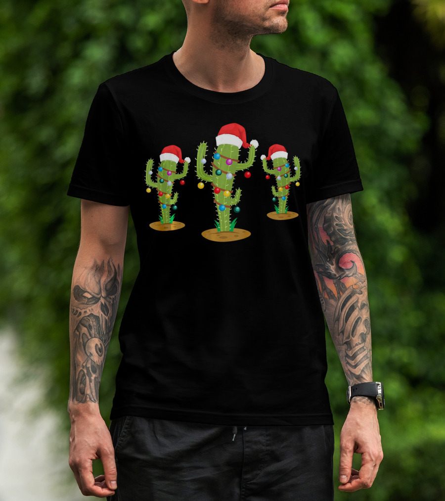 Festive Christmas Cacti With Santa Hats And Lights T-Shirt