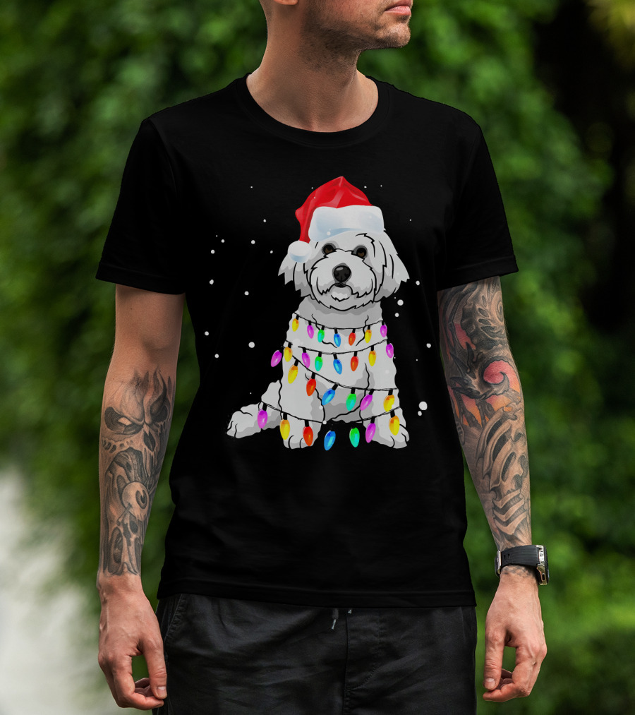 Bichon Frise With Christmas Lights And Santa Hat T-Shirt