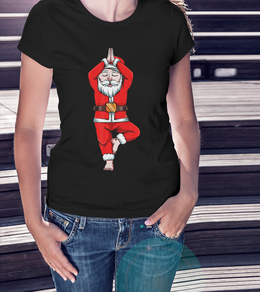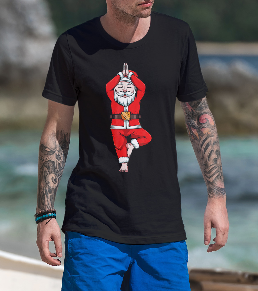 Funny Santa Claus Yoga Pose Meditation Tree Zen Relaxation T-Shirt