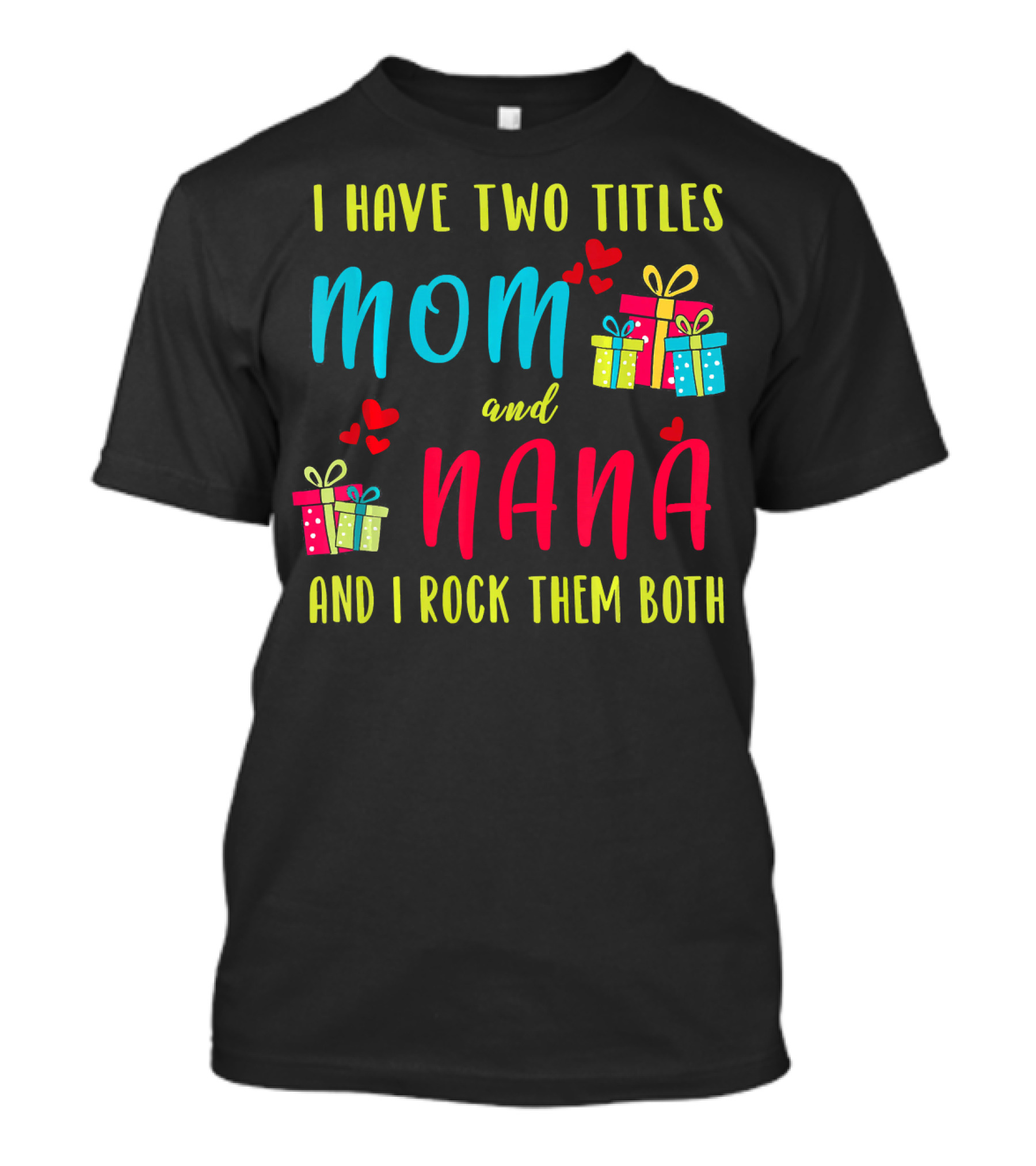 The I Have Two Titles Mom and Nana and I Rock Them Both Christmas Gifts T-shirt is designed for everyday wear and a consistent fit. Fabric is pre-shrunk ring-spun cotton with durable stitching. See the size chart below for exact measurements.