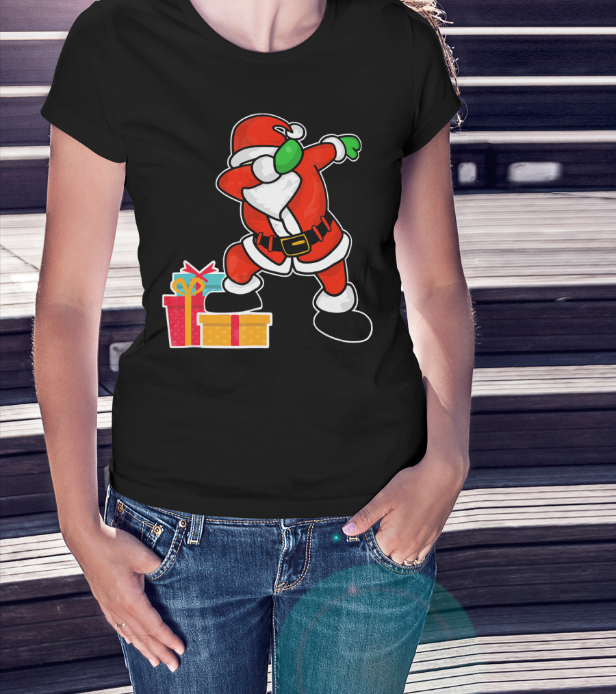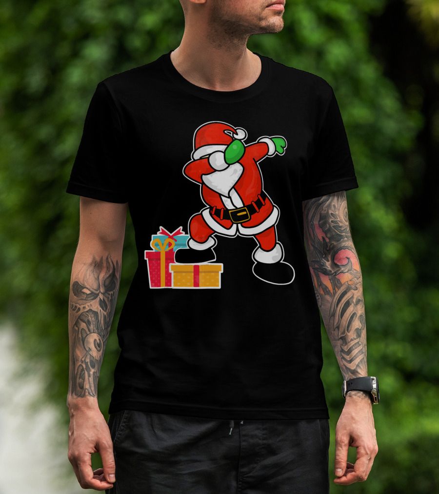 The Cute Santa Dabbing with Gifts T-shirt is designed for everyday wear and a consistent fit. Fabric is pre-shrunk ring-spun cotton with durable stitching. See the size chart below for exact measurements.