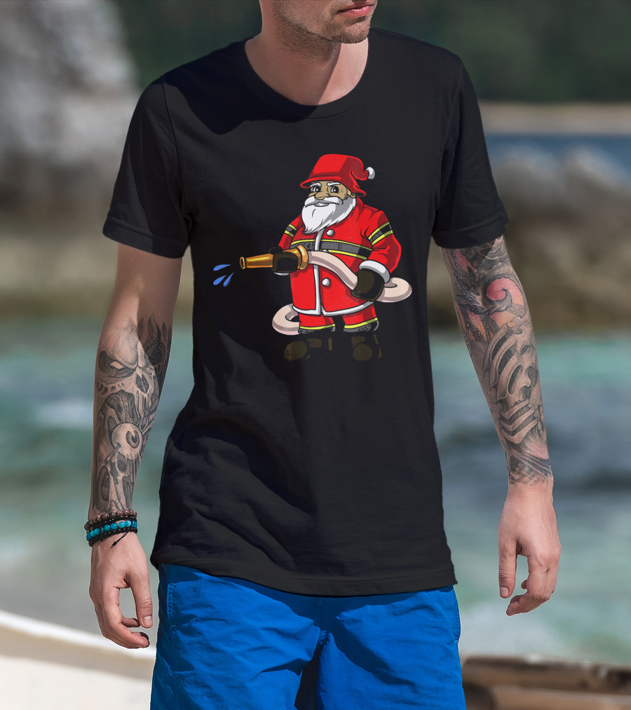 Santa Firefighter With Hose And Water Spray T-Shirt