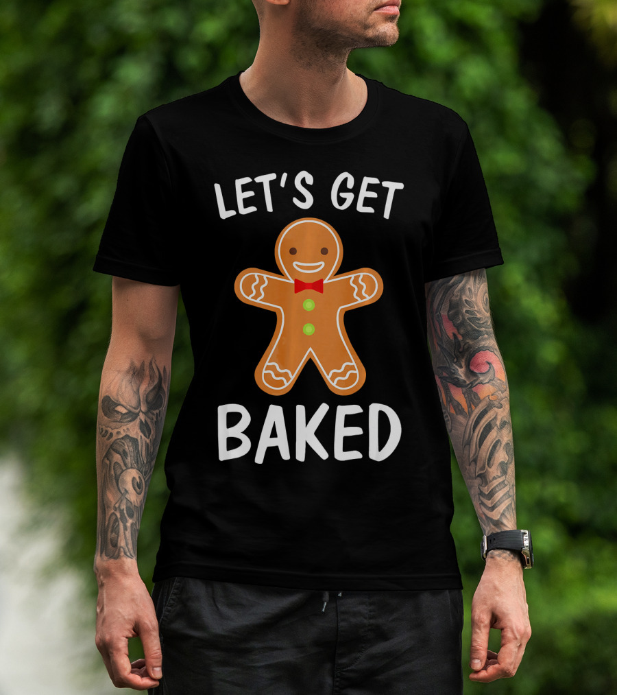 Let's Get Baked Funny Holiday Cookie Christmas Gingerbread Bow Tie T-Shirt