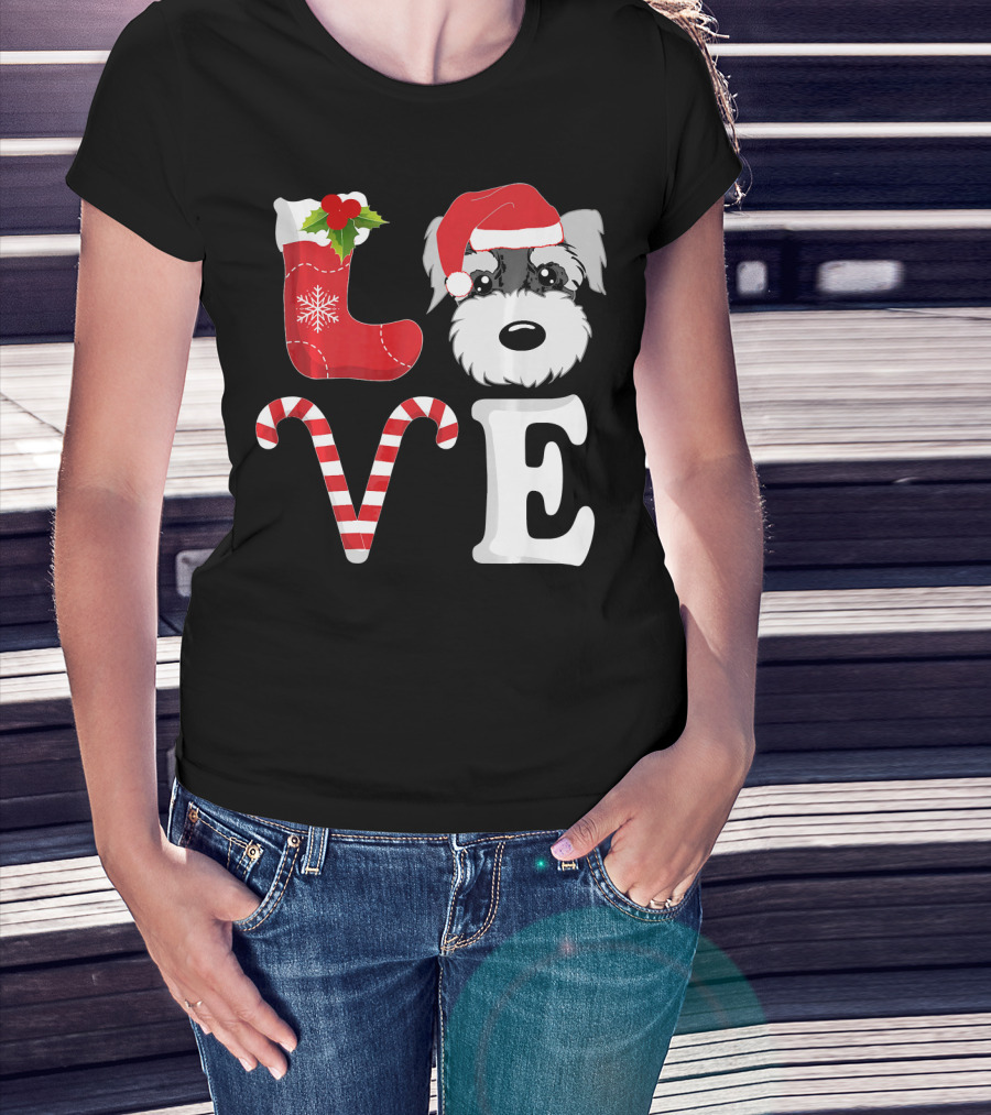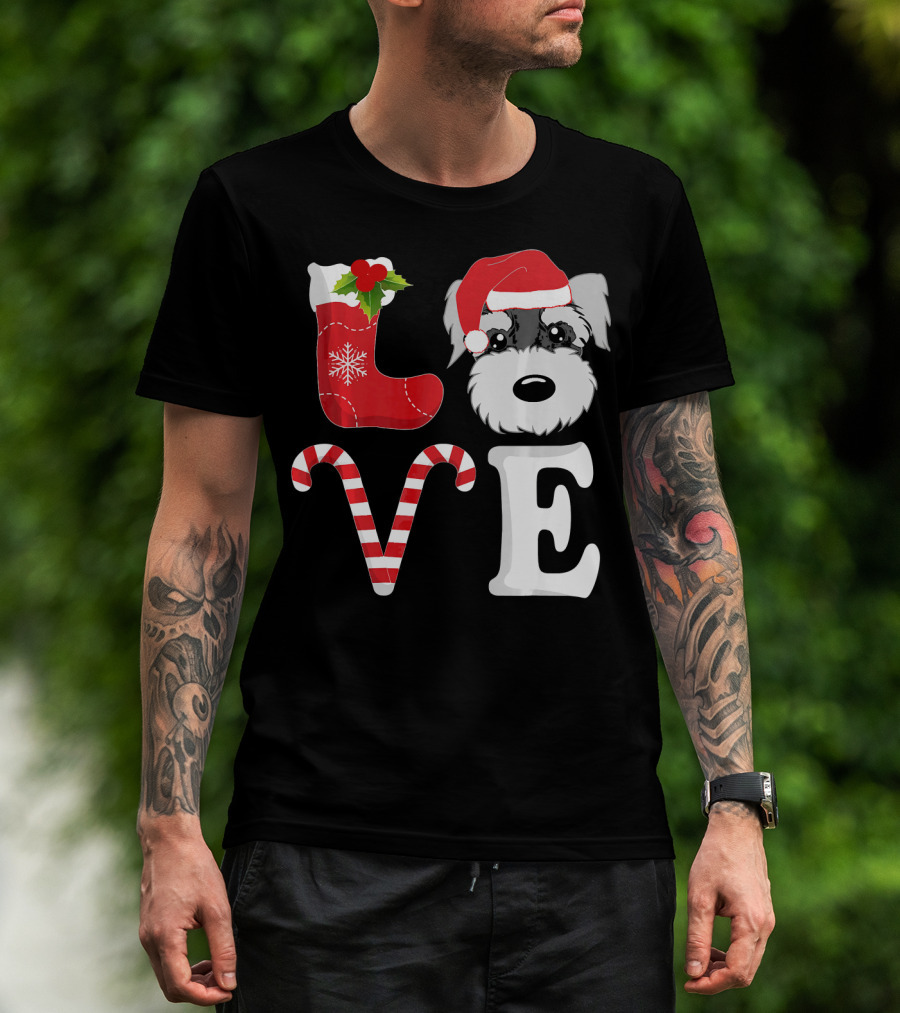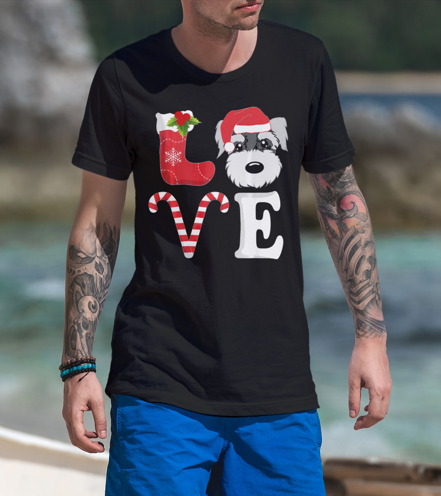 LOVE Miniature Schnauzer Santa Christmas Candy Cane T-Shirt