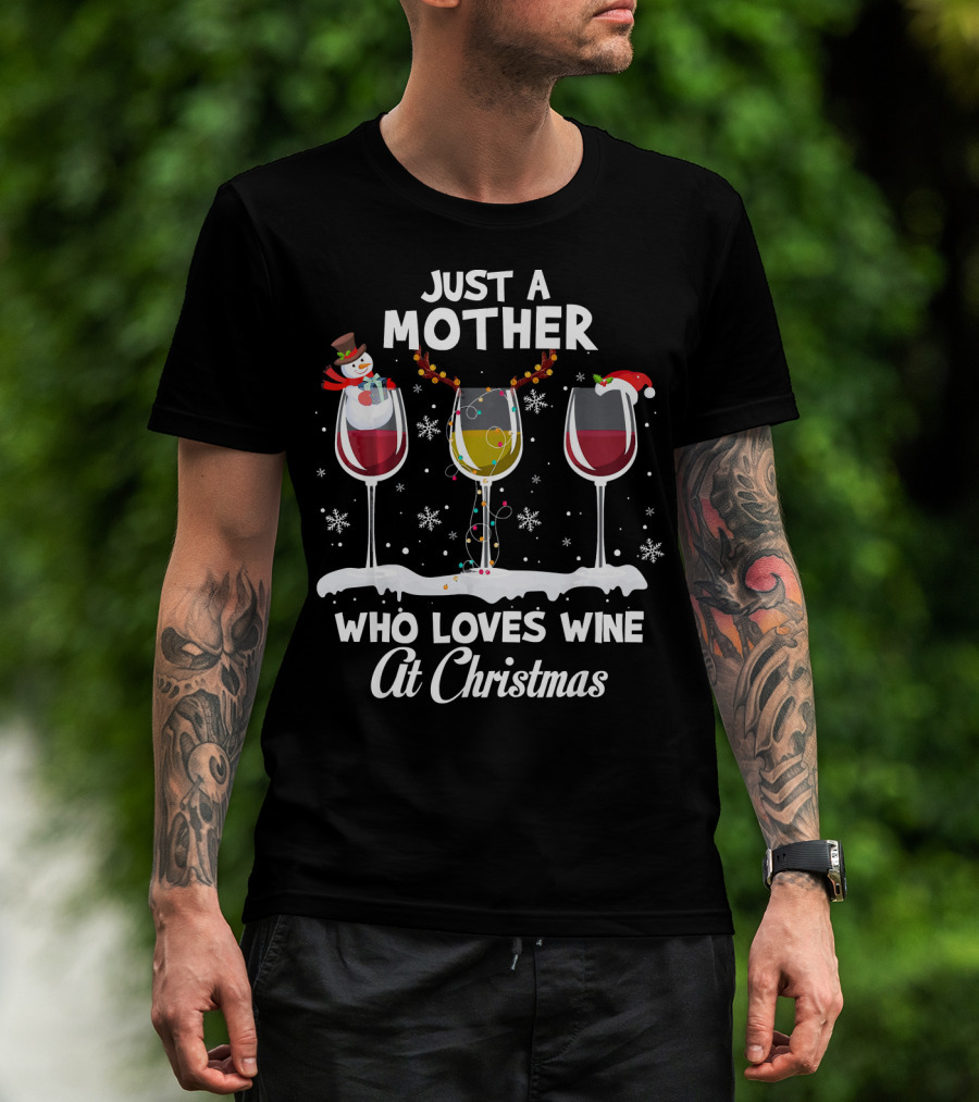 Just A Mother Who Loves Wine At Christmas T-Shirt