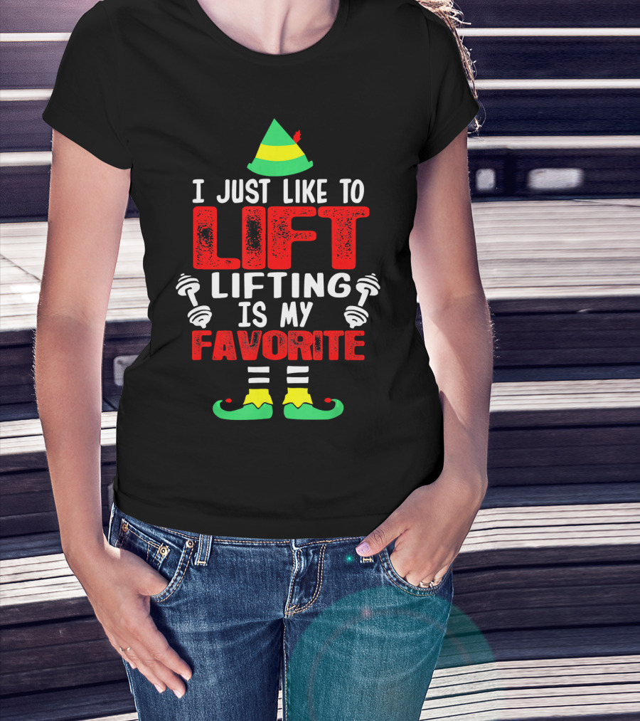 I Just Like To Lift Lifting Is My Favorite Christmas Elf Dumbbells T-Shirt