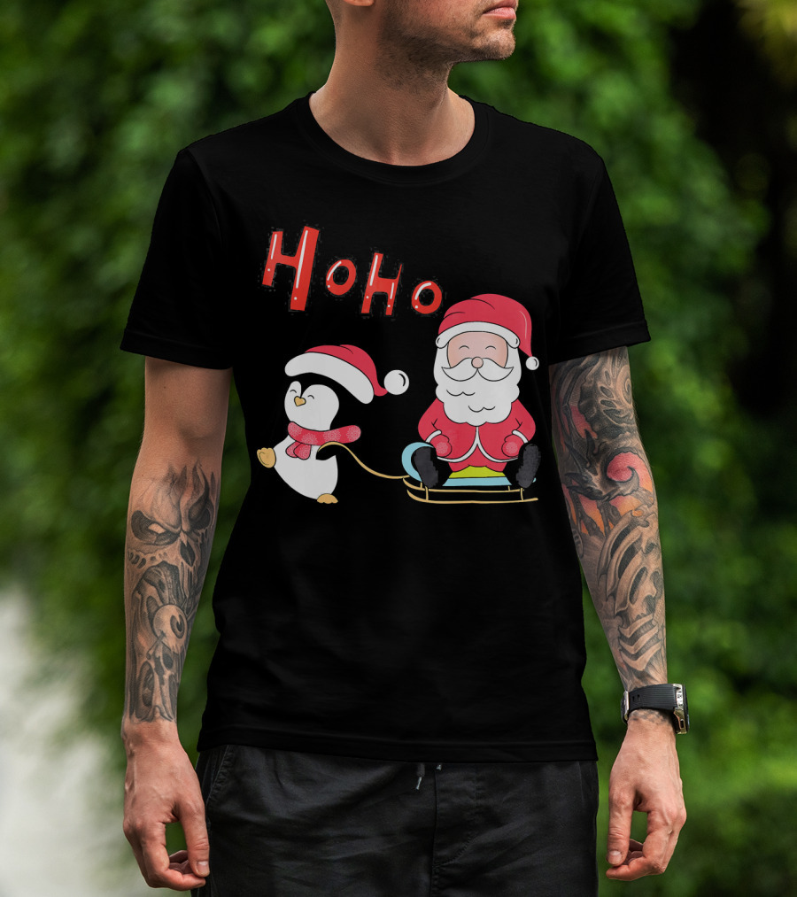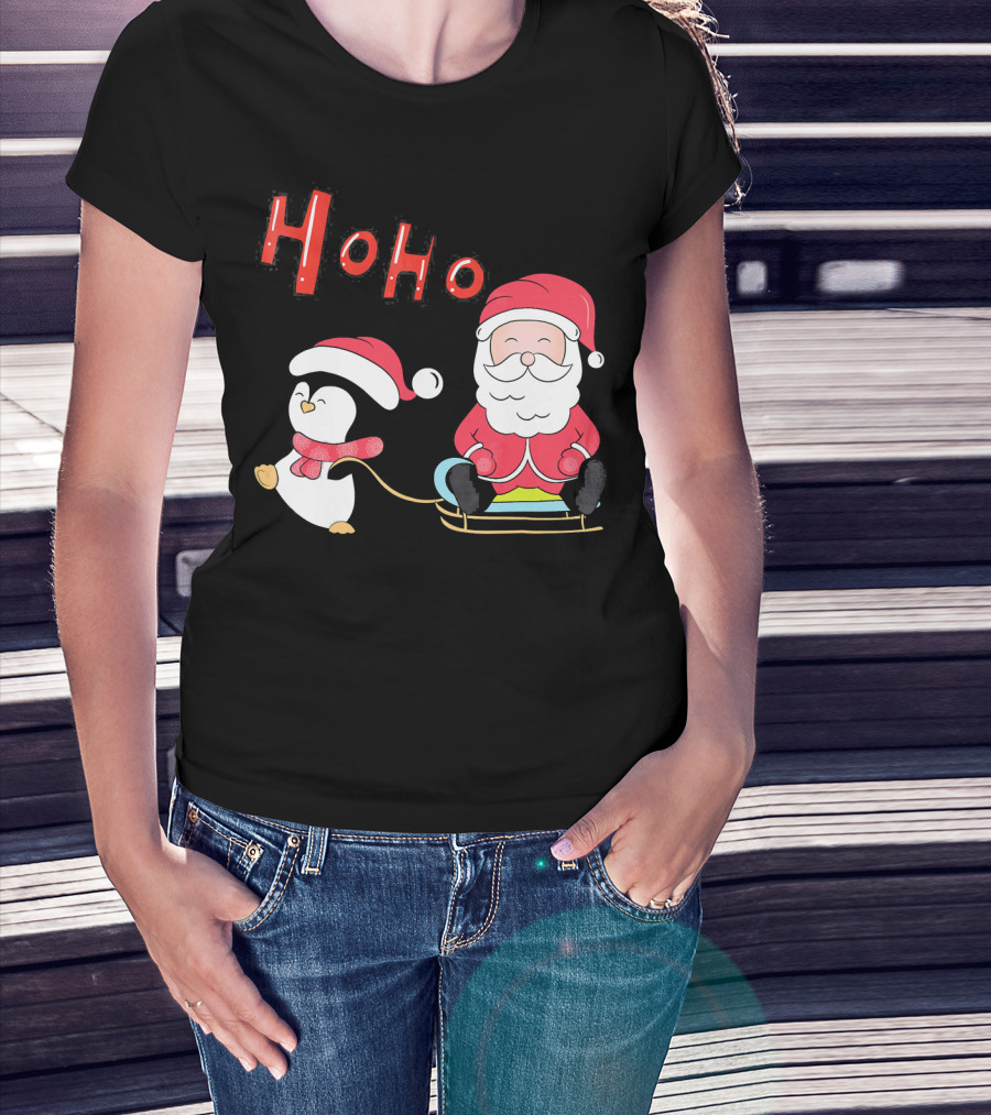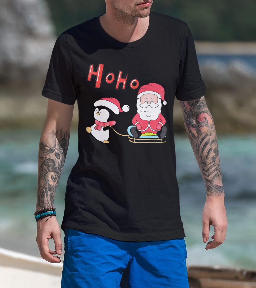 Ho Ho Santa Penguin Merry Christmas Happy Family T-Shirt