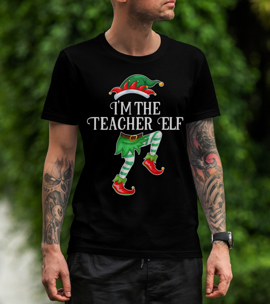 I'm The Teacher Elf Funny Christmas Costume Design With Elf Hat And Shoes T-Shirt