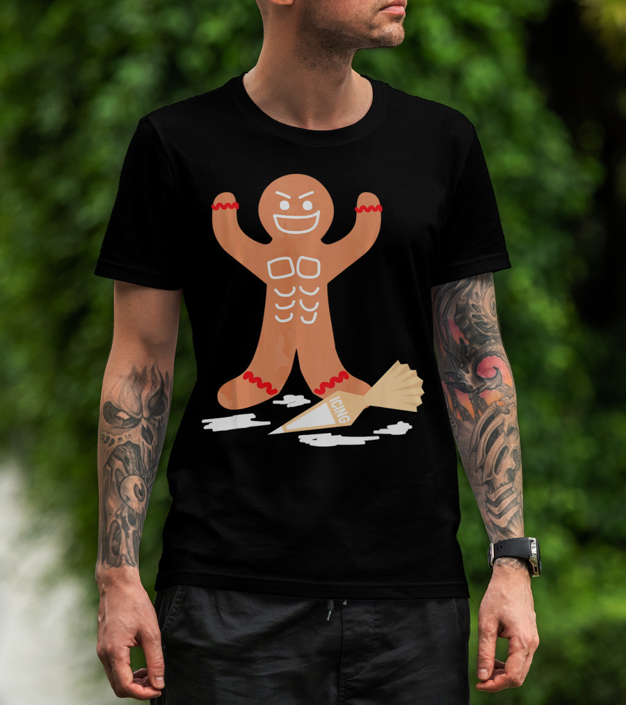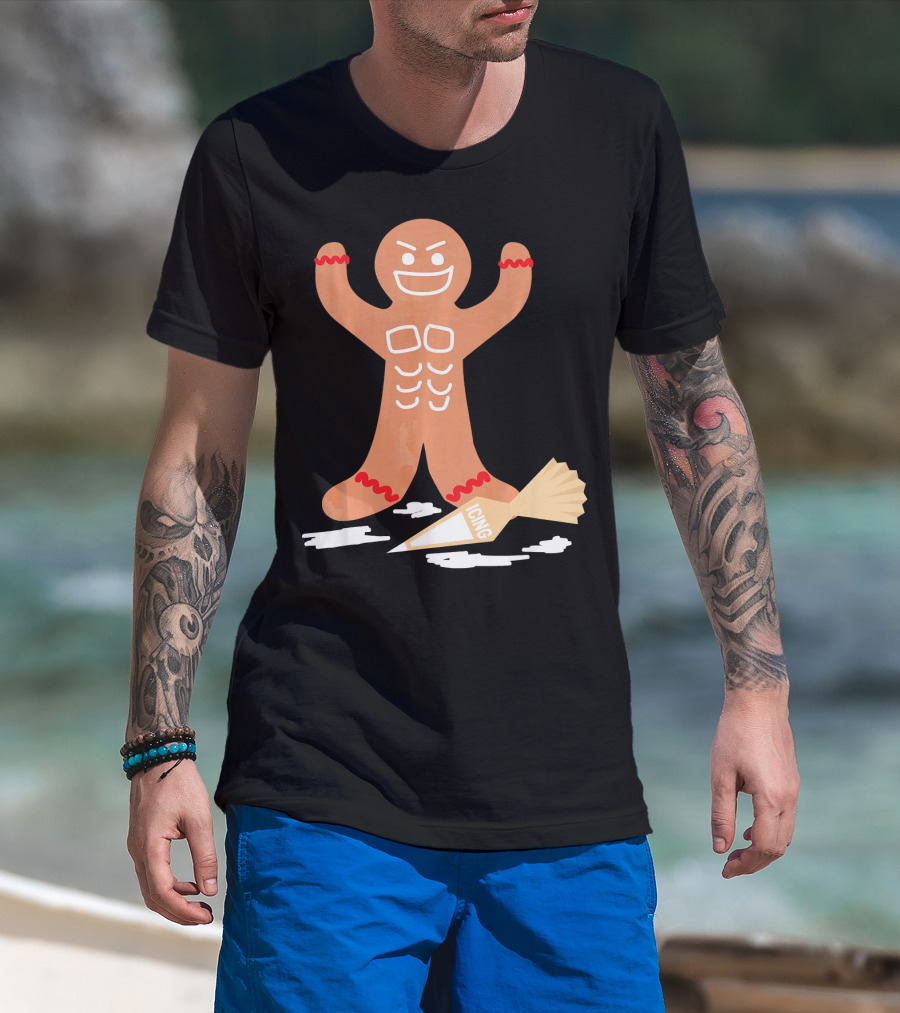 Christmas Gingerbread Muscle Man With Icing Power T-Shirt