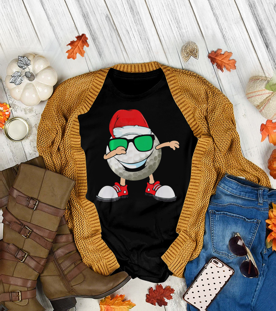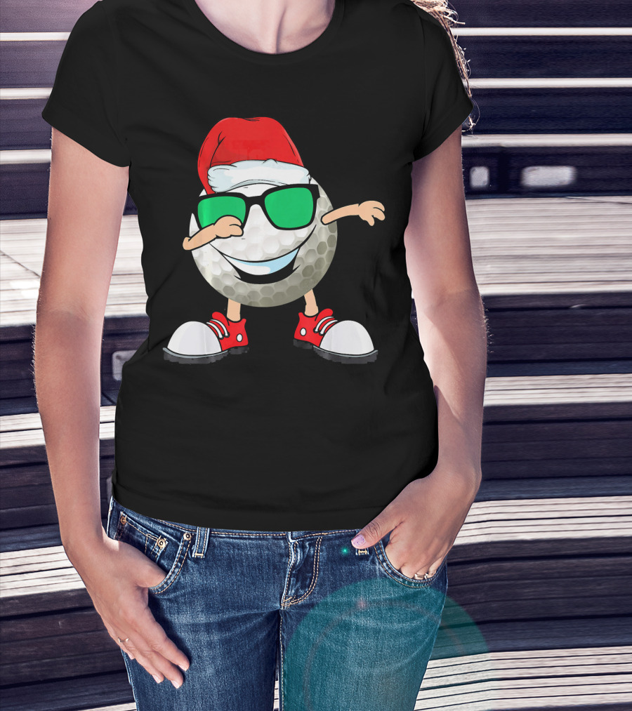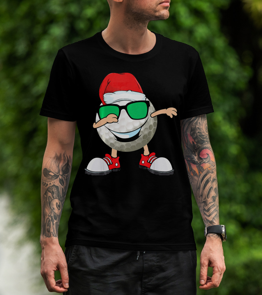 Dabbing Golf Ball With Santa Hat And Sunglasses T-Shirt