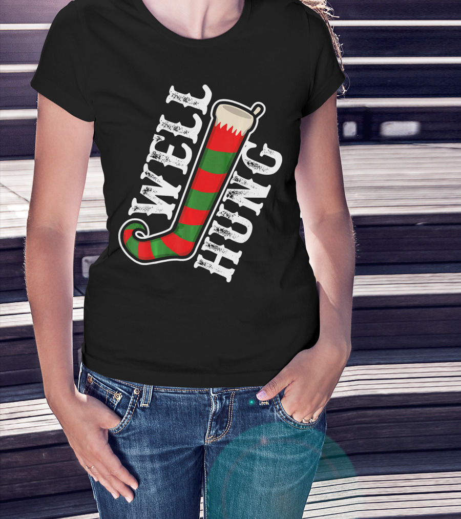Well Hung Christmas Funny Dirty Stocking T-Shirt