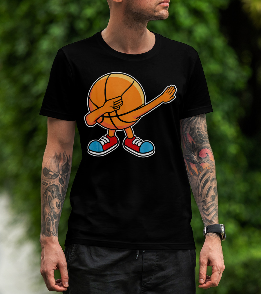 The Dabbing Basketball Character with Sneakers T-shirt is designed for everyday wear and a consistent fit. Fabric is pre-shrunk ring-spun cotton with durable stitching. See the size chart below for exact measurements.