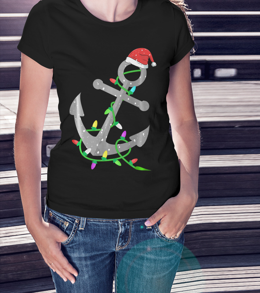 Merry Captain Santa Anchor With Christmas Lights T-Shirt