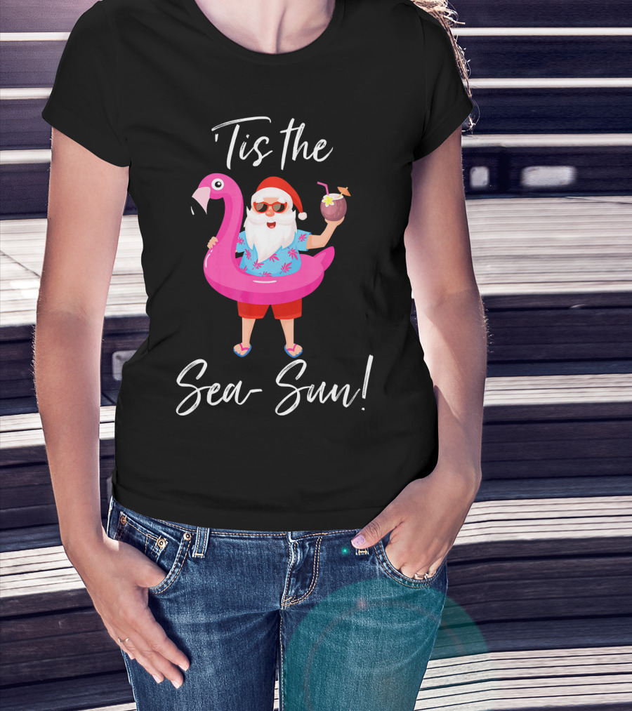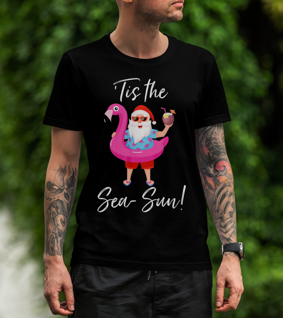 Tis The Sea-Sun Santa Claus Flamingo Float T-Shirt