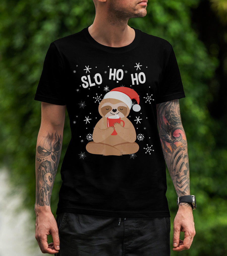 Slo Ho Ho Merry Slothmas Christmas Sloth Santa Hat T-Shirt