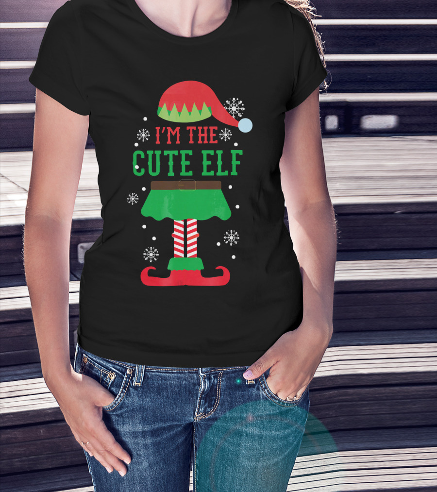 The I'm the Cute Elf with Snowflakes T-shirt is designed for everyday wear and a consistent fit. Fabric is pre-shrunk ring-spun cotton with durable stitching. See the size chart below for exact measurements.