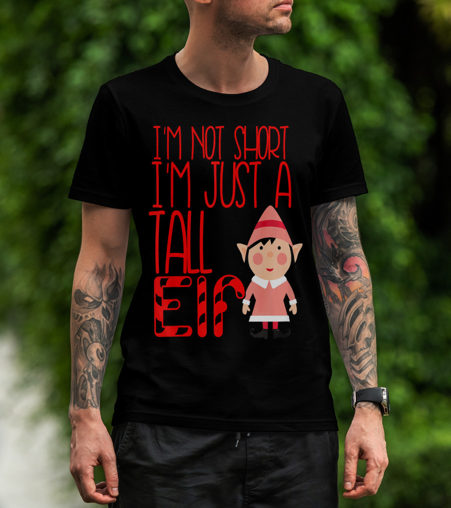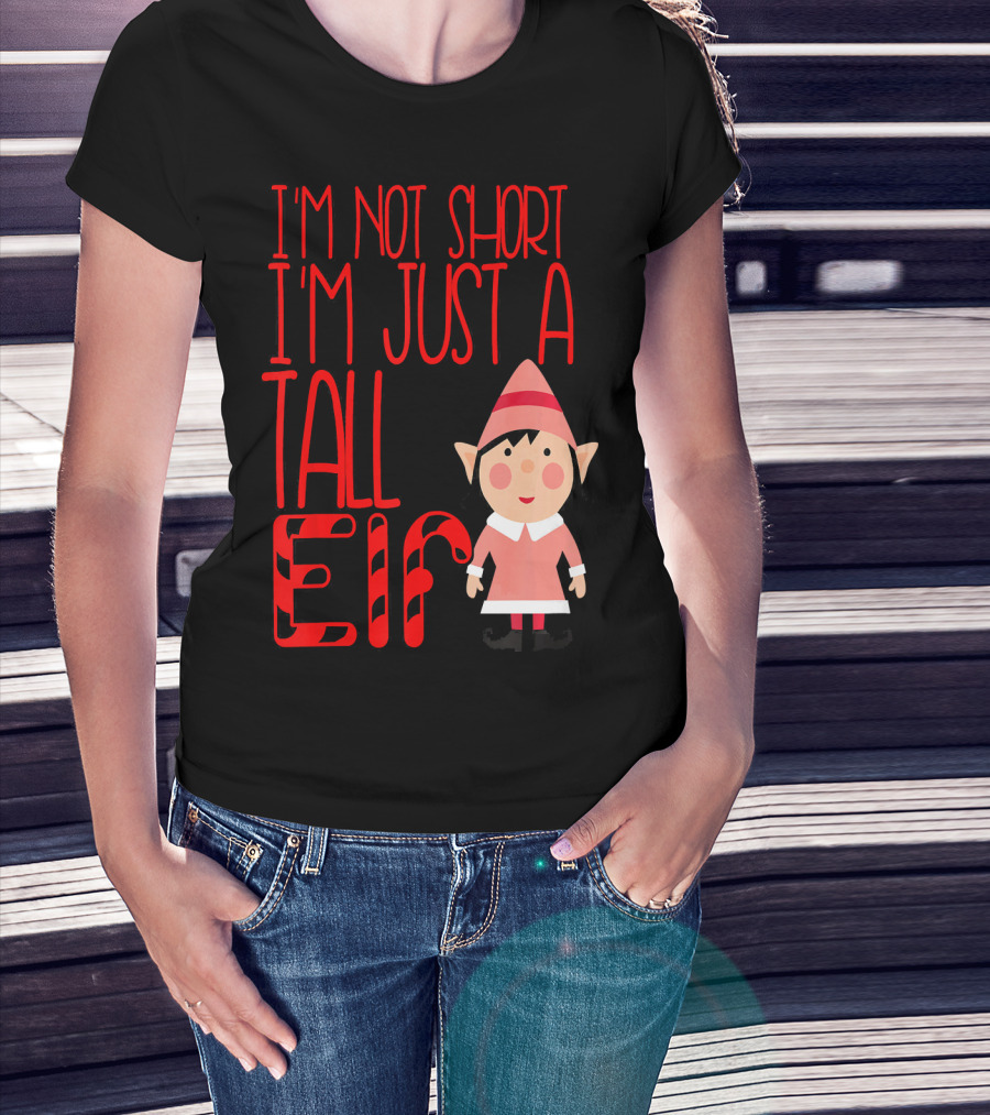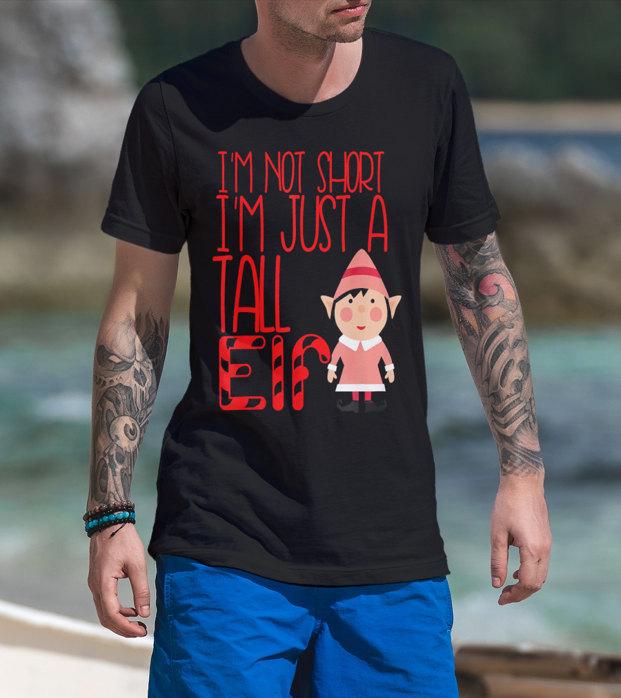 I'm Not Short I'm Just A Tall Elf With Candy Cane Style And Cartoon Character T-Shirt
