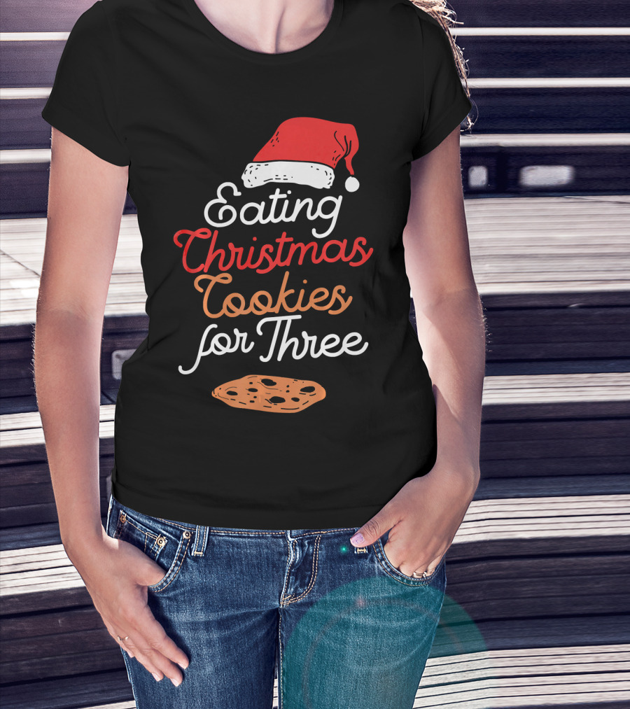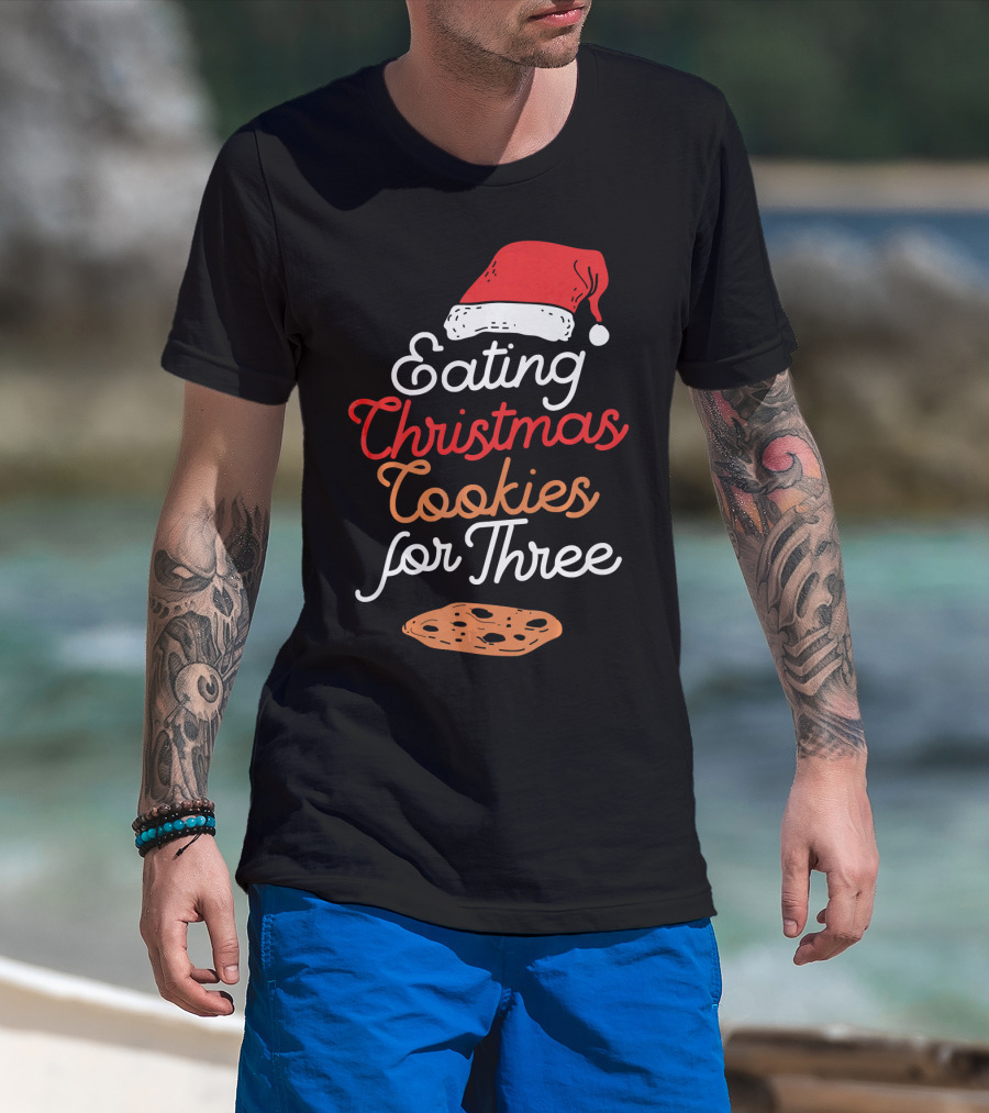 Eating Christmas Cookies For Three With Santa Hat And Cookie T-Shirt